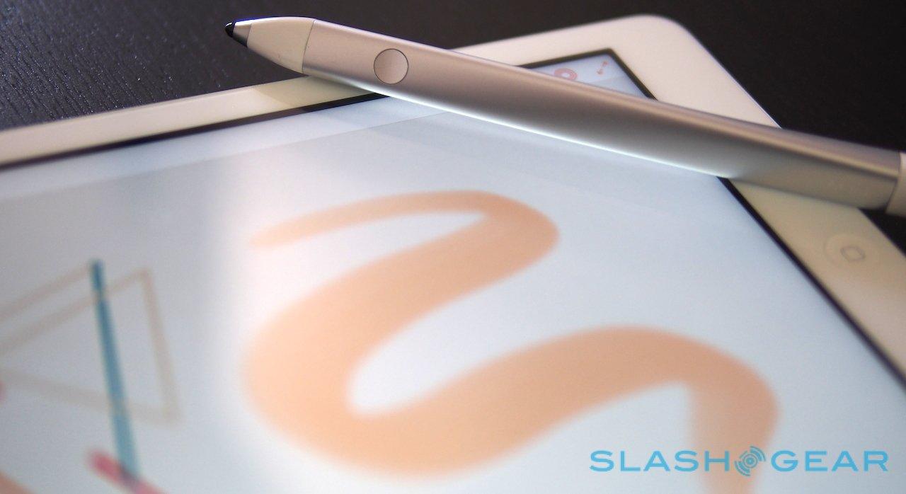 In the hand it's surprisingly pen-like, light and solid. The brushed metal finish is smooth but easily gripped, and the nib is hard and glides nicely across the glass display of the iPad, rather than catching like some rubber nibs can.