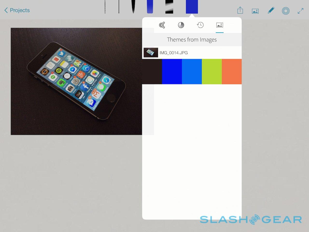 Sketch also creates custom color sets on the fly from imported images, picking out the five key colors and grouping them into a new collection. Images from both Line and Sketch can easily be shared using either Creative Cloud's Behance community – Sketch also has a menu of recent publicly-shared images to look through, or even edit yourself (though the original is unmodified, and only a copy saved to your own collection) – or the typical iOS sharing options.