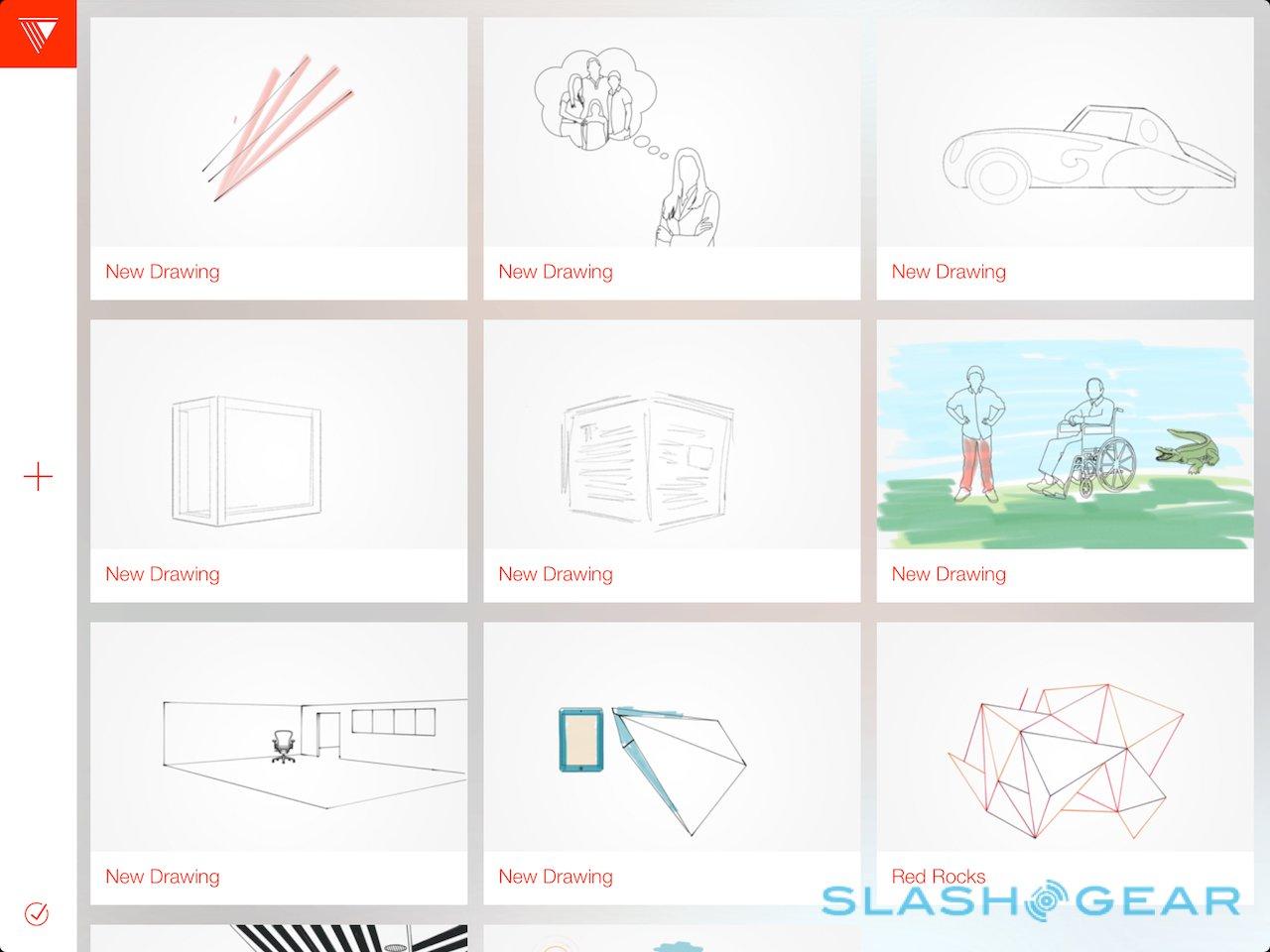 Even deeper, Perspective Mode turns on horizon lines for 3D drawings. You can adjust the angle of the lines beforehand, or change it mid-drawing, while Slide's guidelines adhere automatically to the vanishing points. Small on-screen arrows flip between the different perspectives.