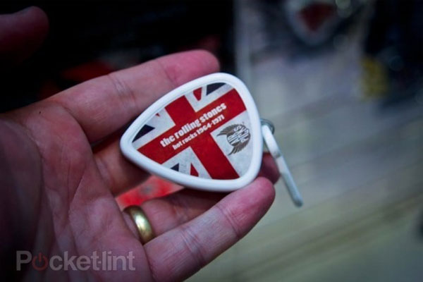 The picks are shaped like your typical guitar pick, though they are significantly fatter than the real thing. The Air Picks are form a company called Flair in the UK and will hit stores in the next few weeks. There are several versions and each have three songs inside. I get the feeling that the tunes are the guitar portion only, but that isn't clear.