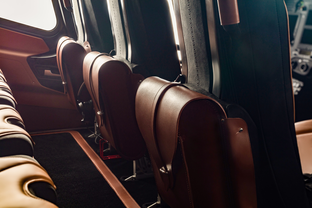The result is what Aston Martin calls a new level of aesthetics and rigorous attention to detail being brought to the helicopter market. The seats inside the helicopter have the Aston Martin wings on them. The helicopter in the images is a Stirling Green external theme with a painted gradient that fades to Jet Black on the underside of the helicopter with Skyfall Silver around the cowlings.