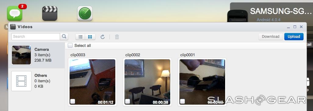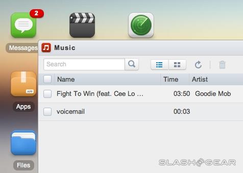 While you're able to access quite a few different phone-based app connections from this interface, it's by no means top-to-bottom comprehensive at the moment. You can make a phone call, send an email, read your email, play music, look at your photos, and browse your files. Send text messages, and browse the movies on your phone. There's no movie player on this system, so you're limited to downloading and uploading files to your desktop's own file system to view the videos, but you can see one-frame previews so you know what you're getting.