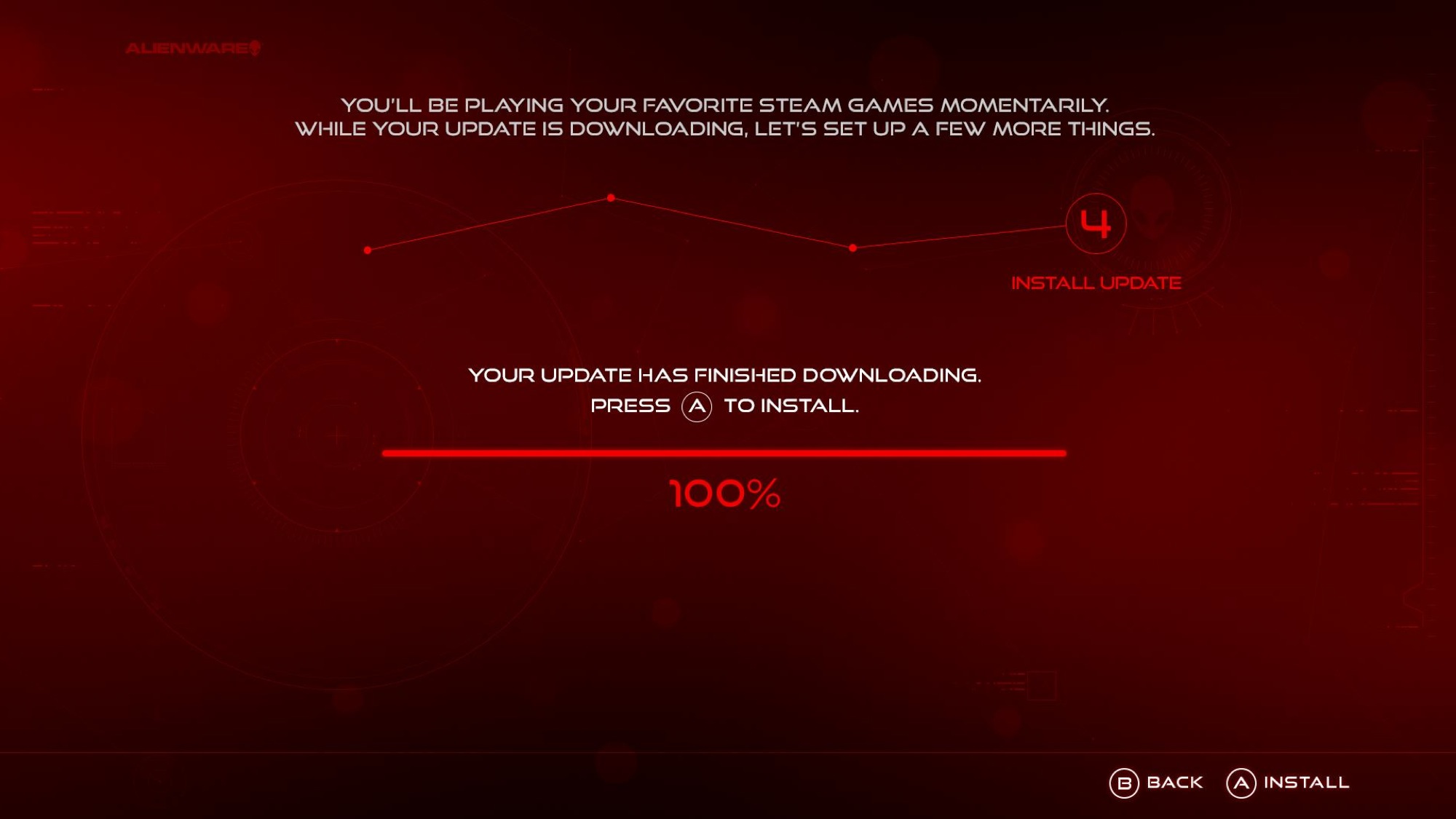Alienware's familiar "AlienFX" multicolor lighting is present, though given the size of the console it's limited to just the company logo and the glowing triangle on the notched edge. Each can be independently controlled, as well as set to adjust automatically according to game events.