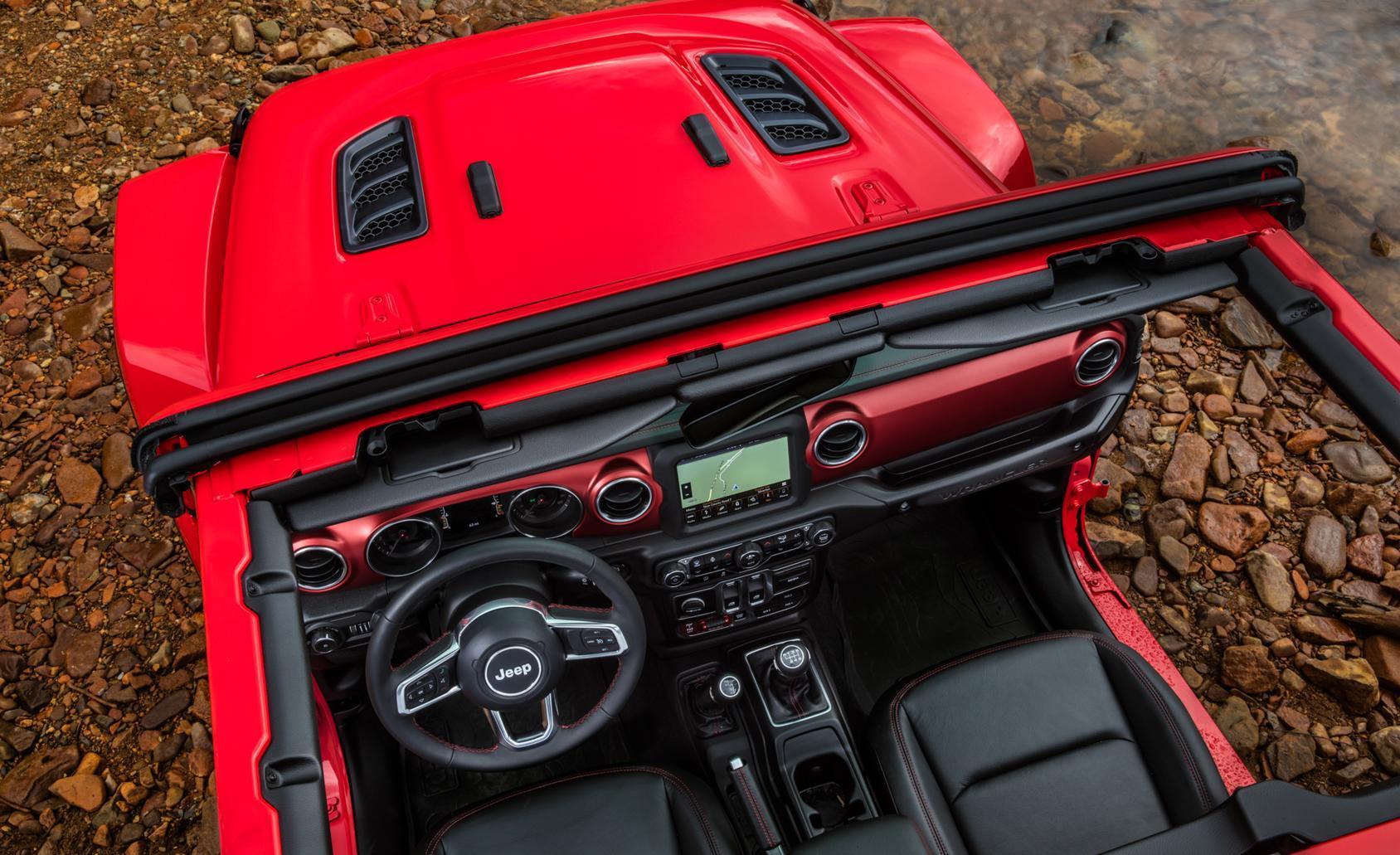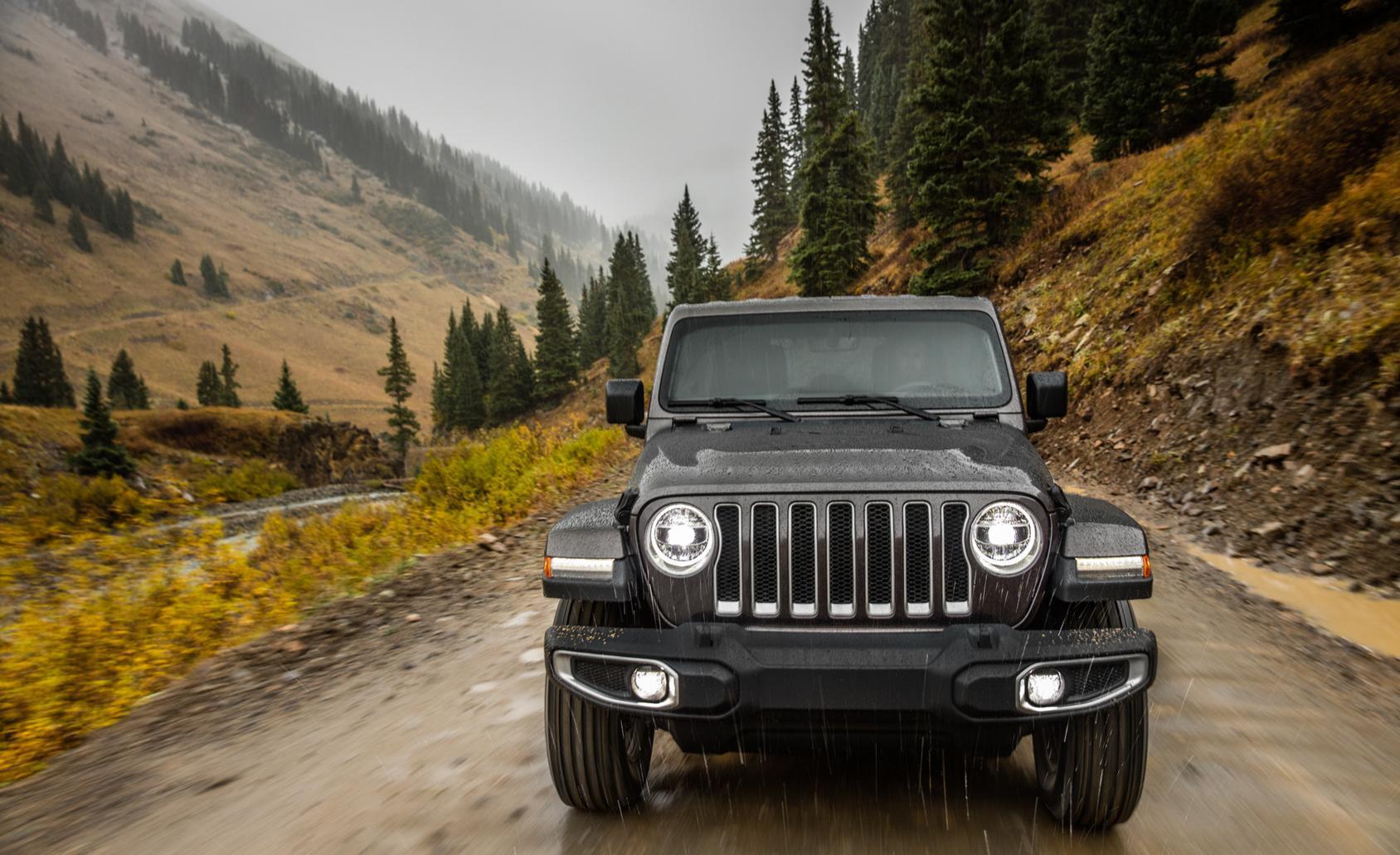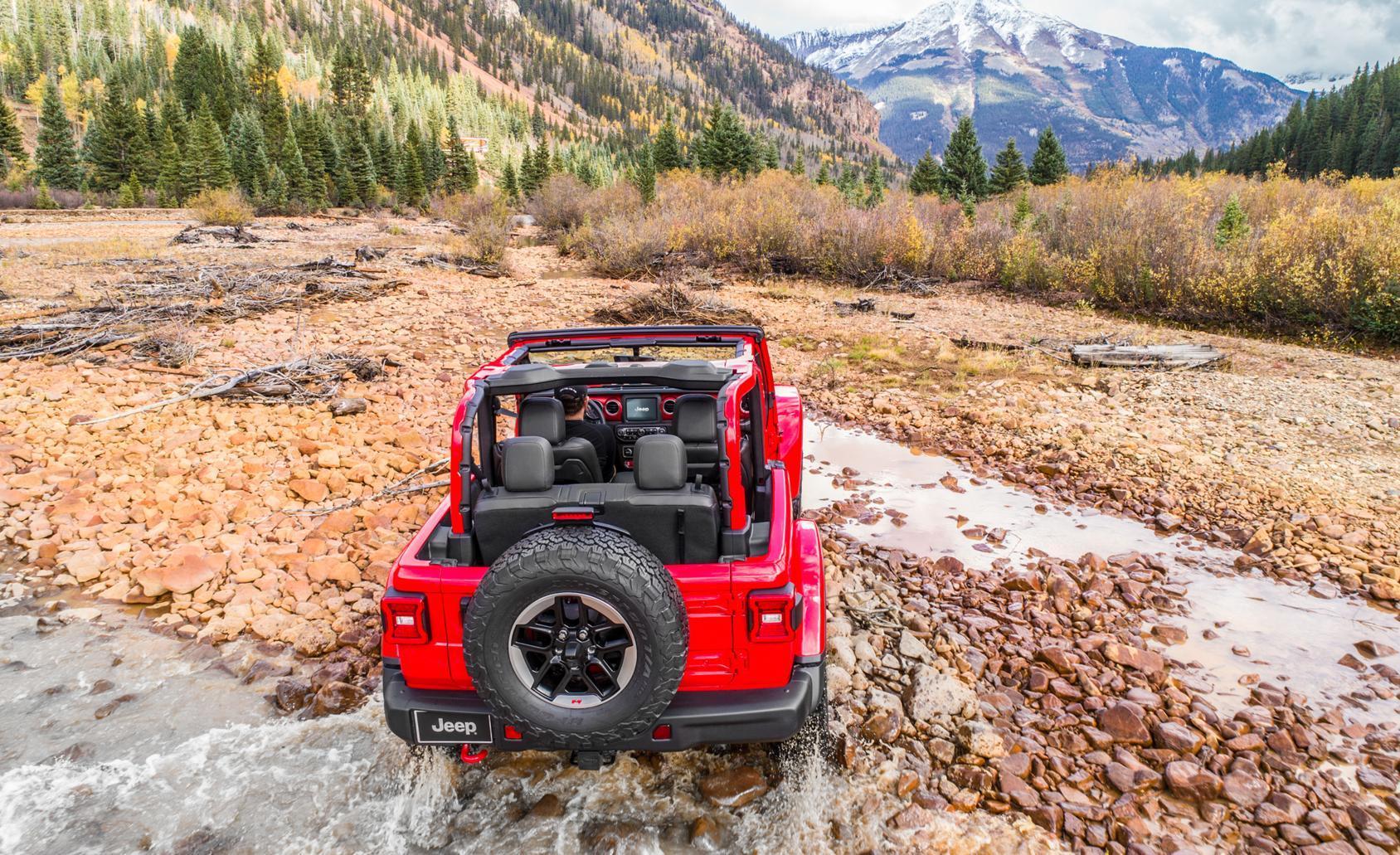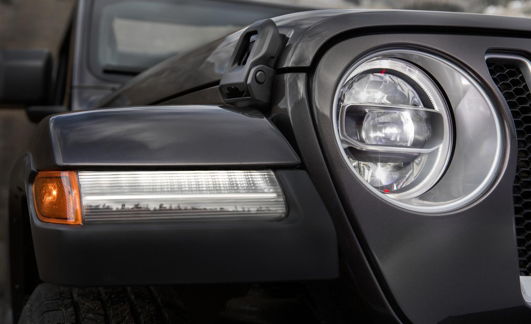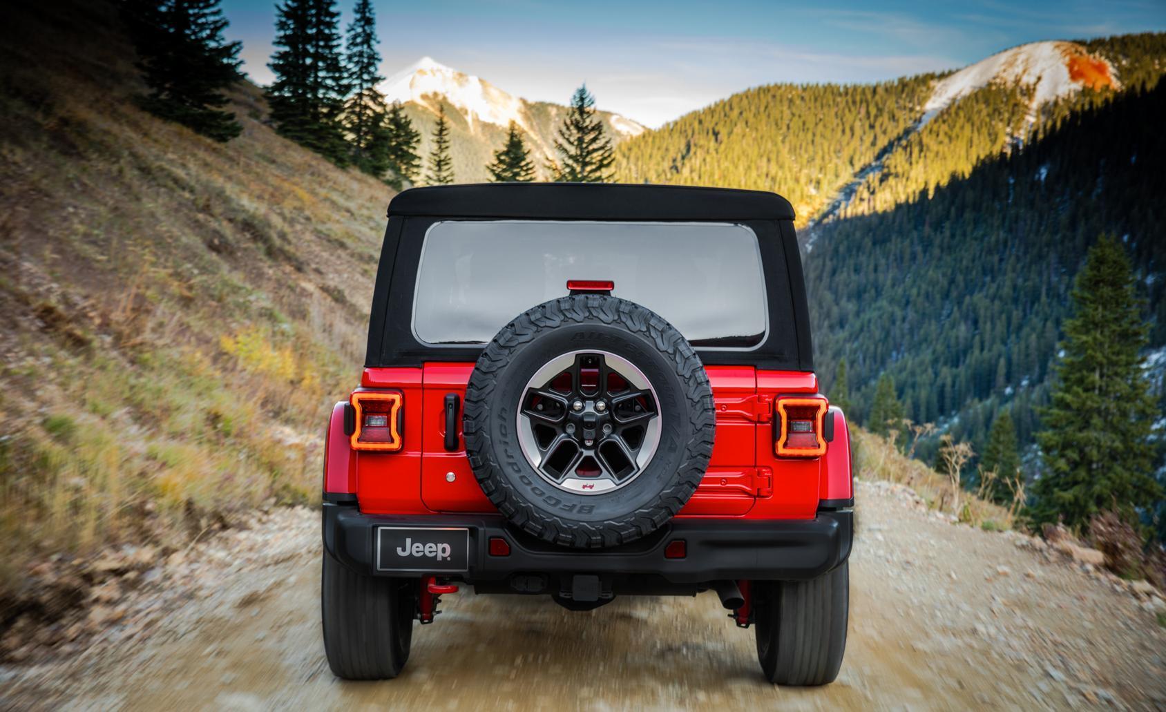 Wrangler drivers will be able to ford up to 30-inches or water. While the design is all new, the vehicle still looks like a Jeep. It packs round headlights and square taillights; the aerodynamics are improved without sacrificing the iconic square shape of the car. The Wrangler JL can be had on highly-equipped versions with a power folding soft top, which is a first for the line.