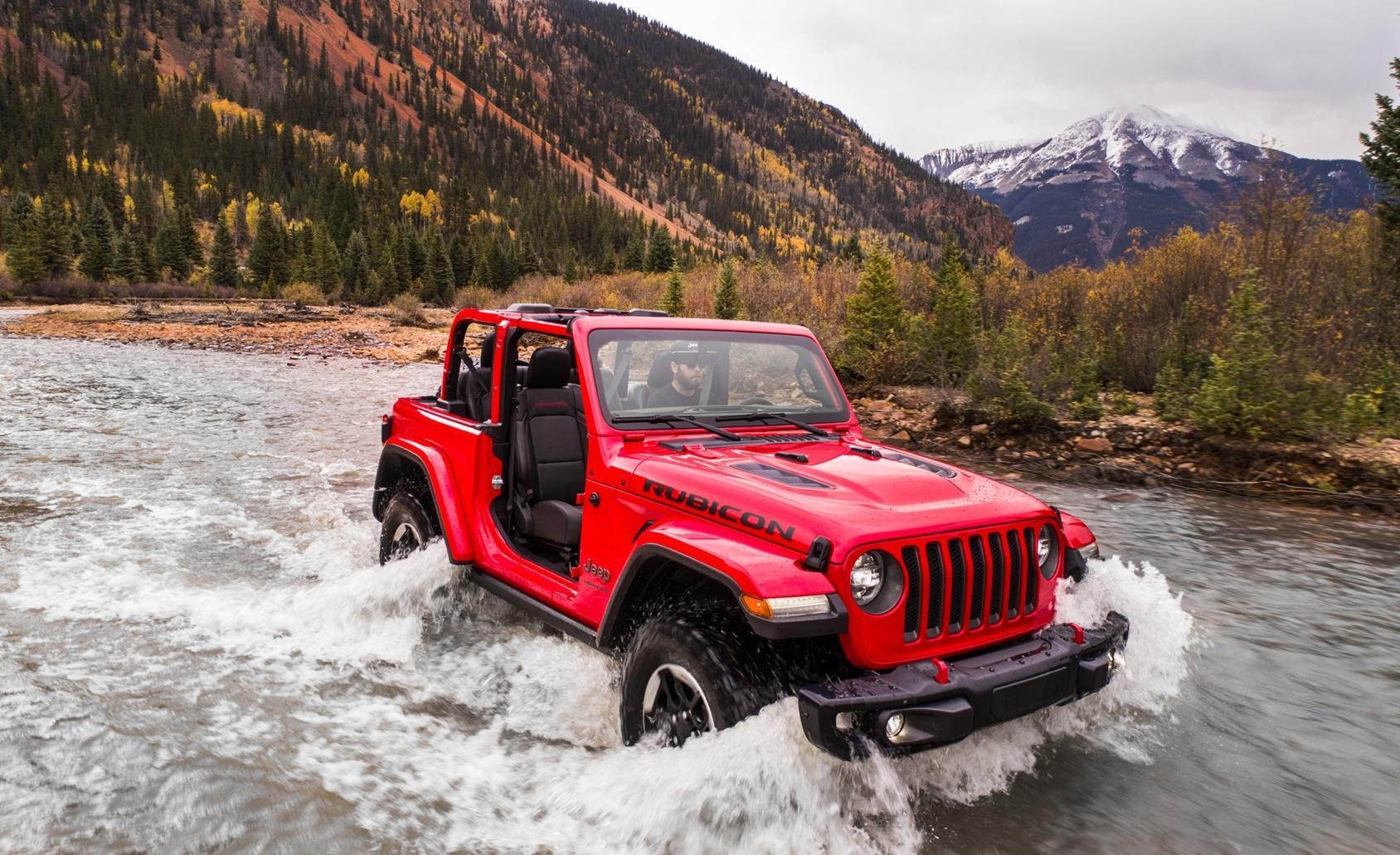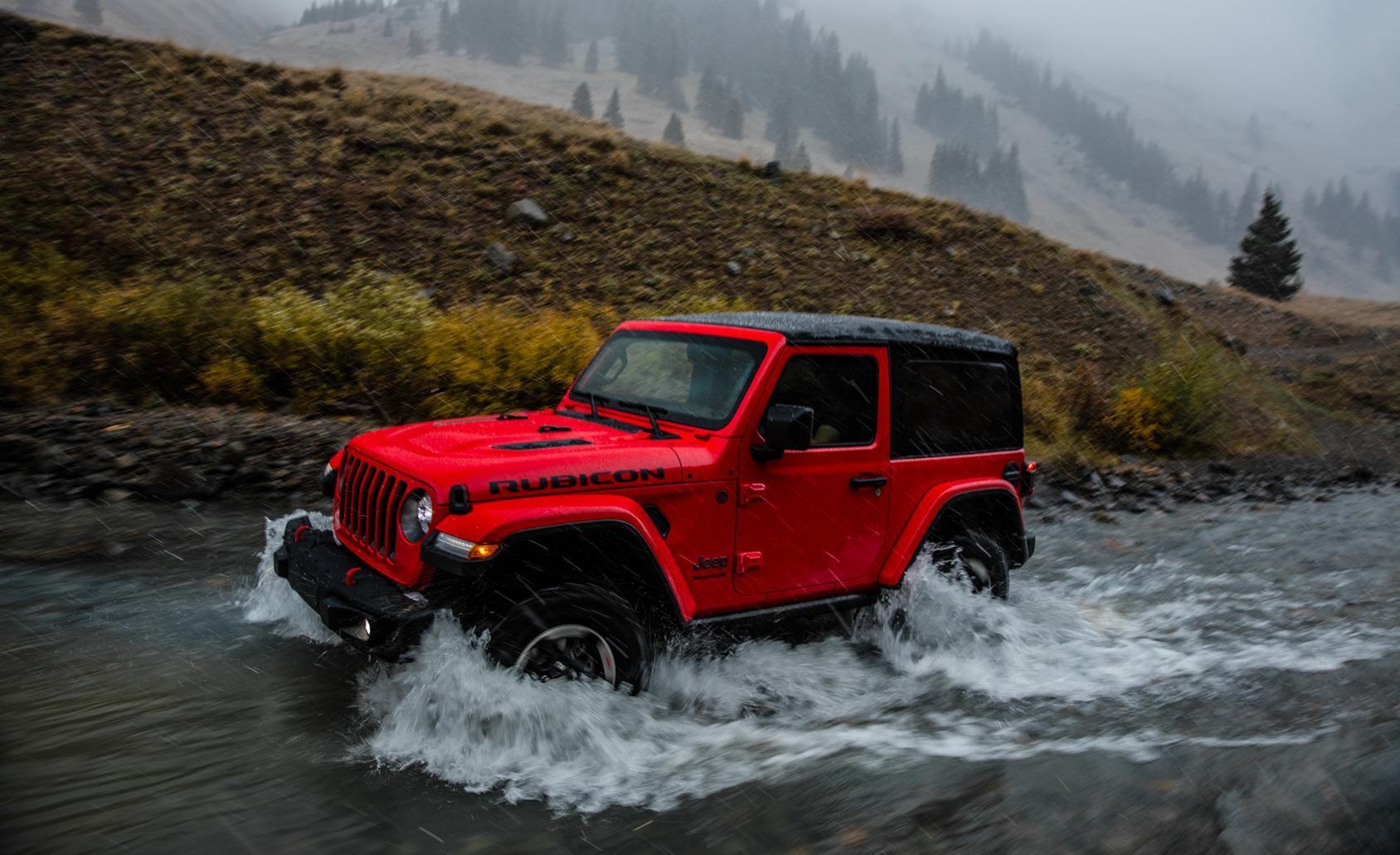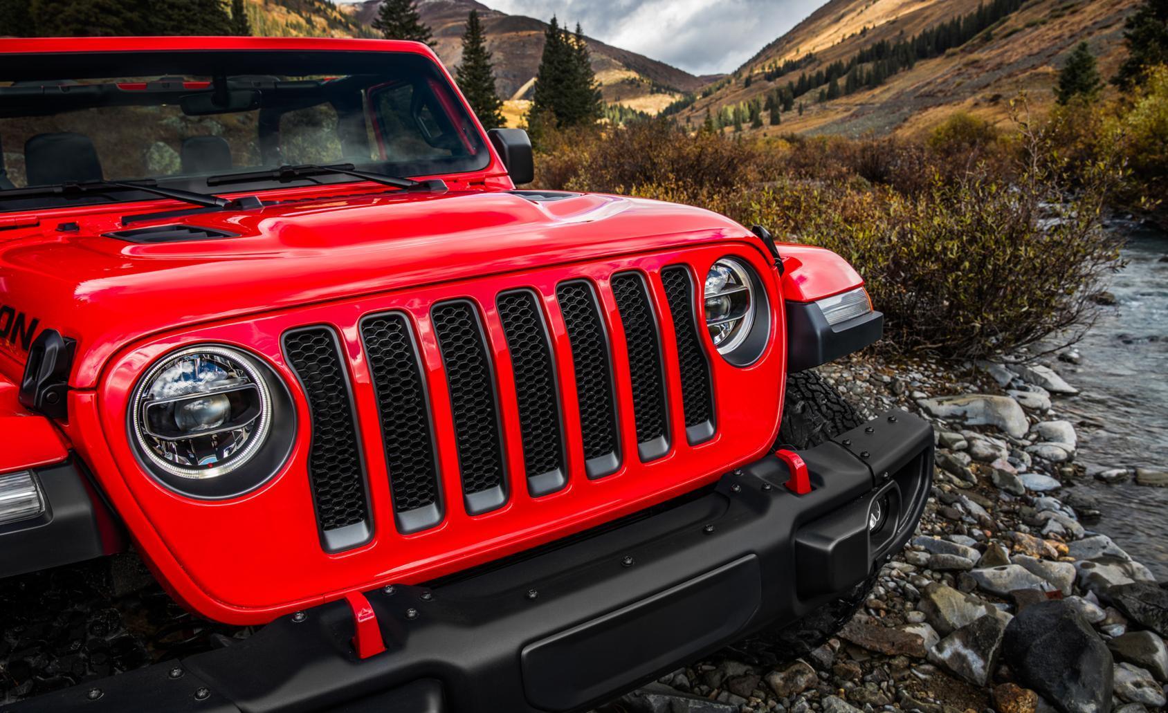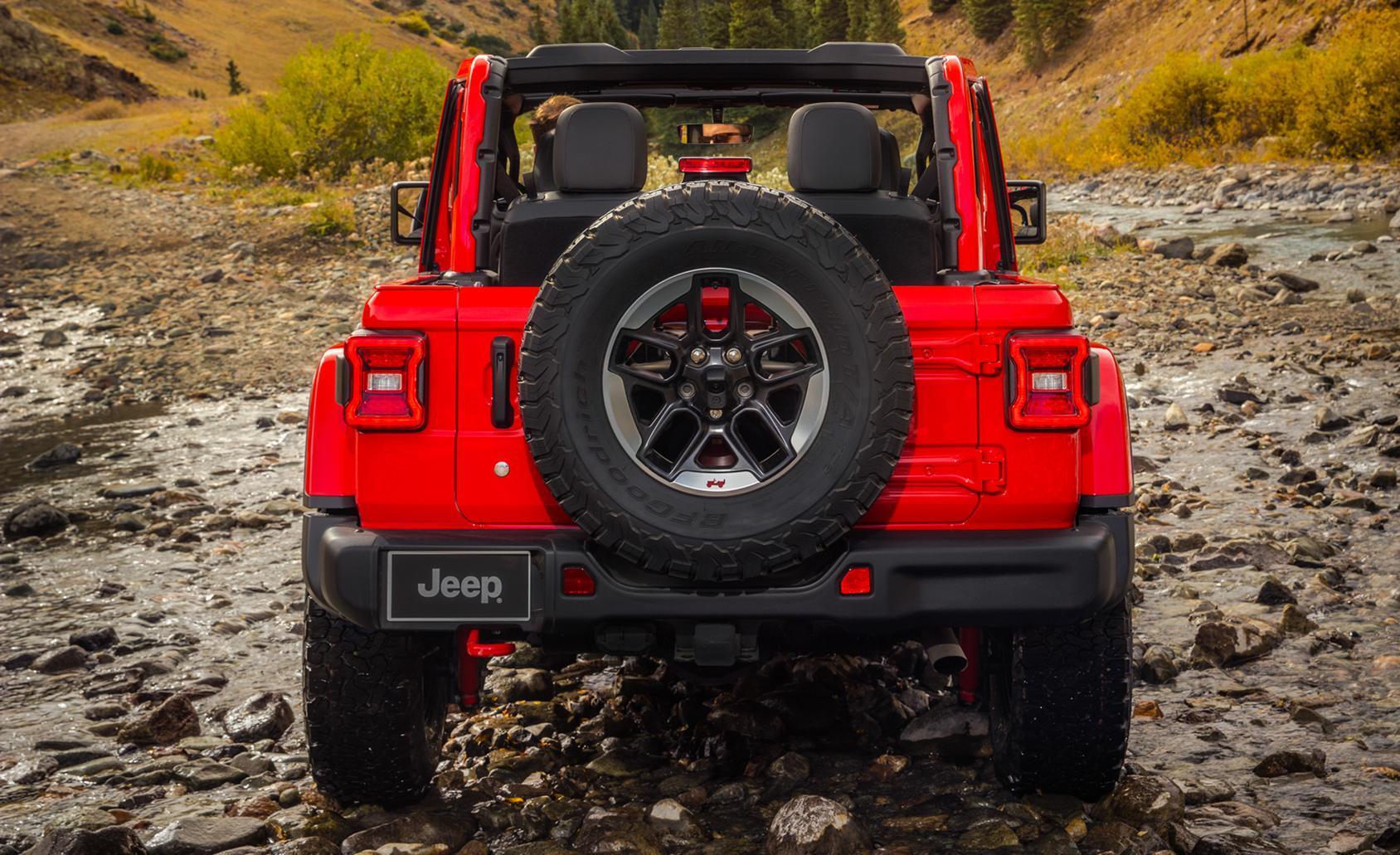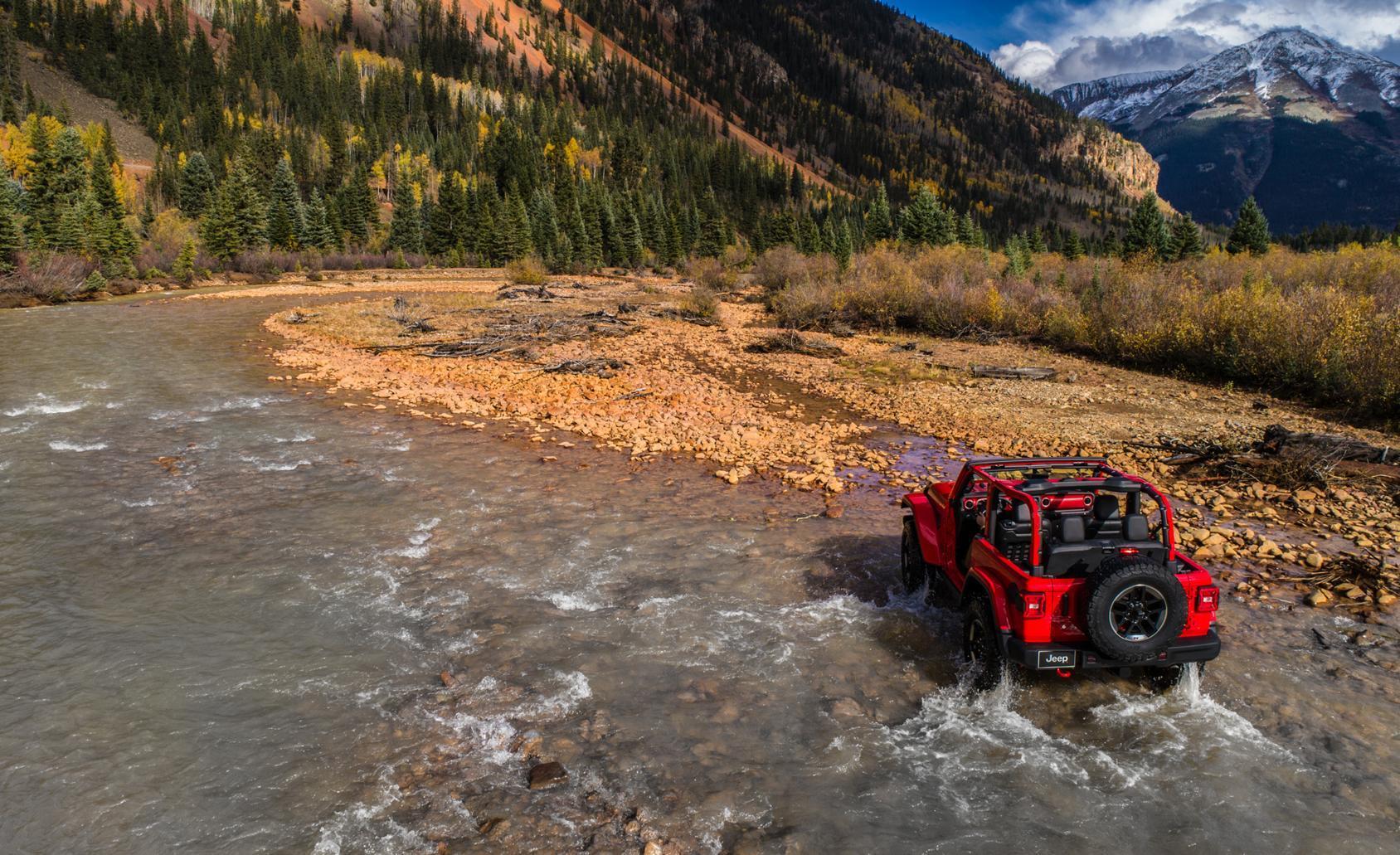 Wrangler drivers will be able to ford up to 30-inches or water. While the design is all new, the vehicle still looks like a Jeep. It packs round headlights and square taillights; the aerodynamics are improved without sacrificing the iconic square shape of the car. The Wrangler JL can be had on highly-equipped versions with a power folding soft top, which is a first for the line.