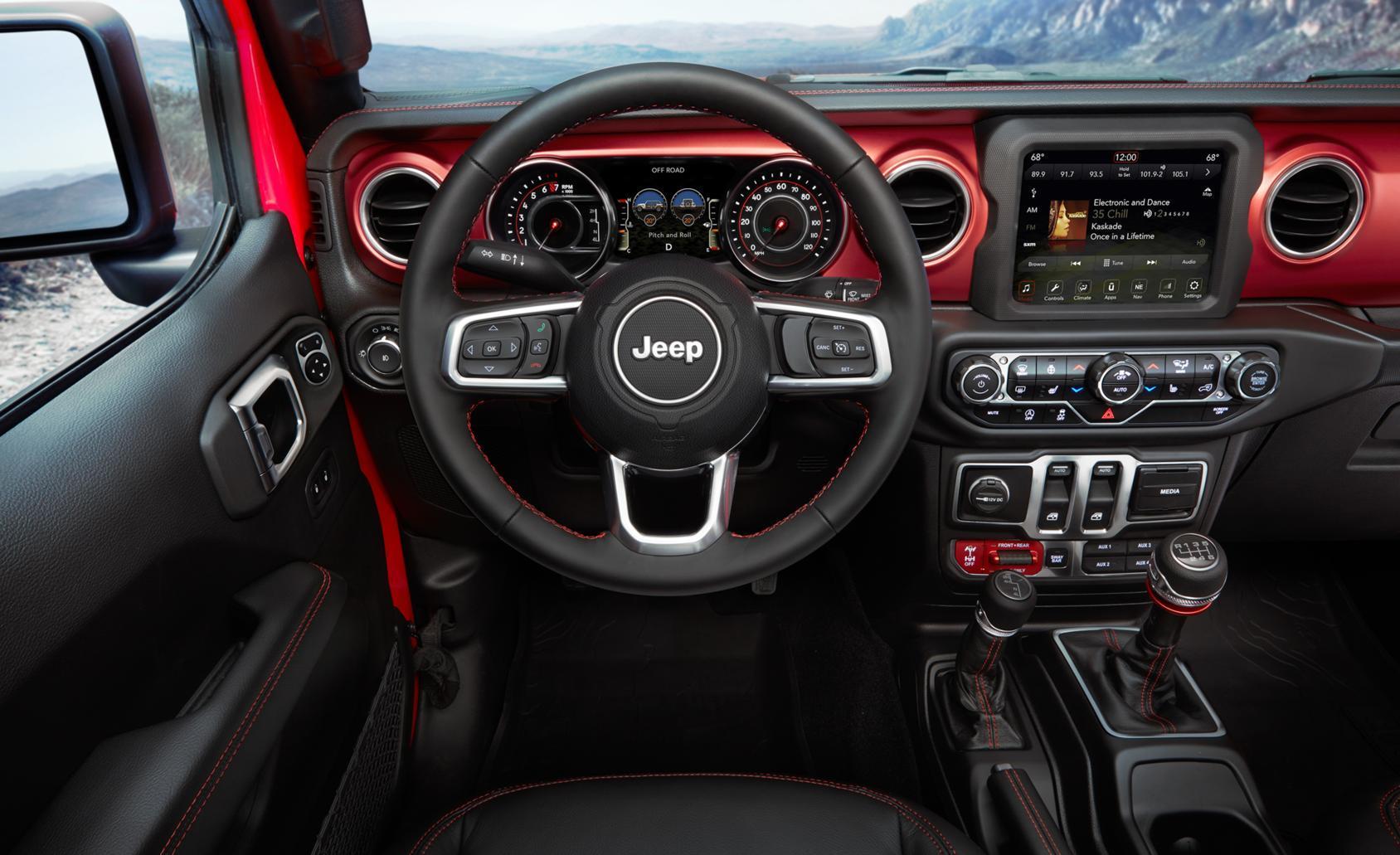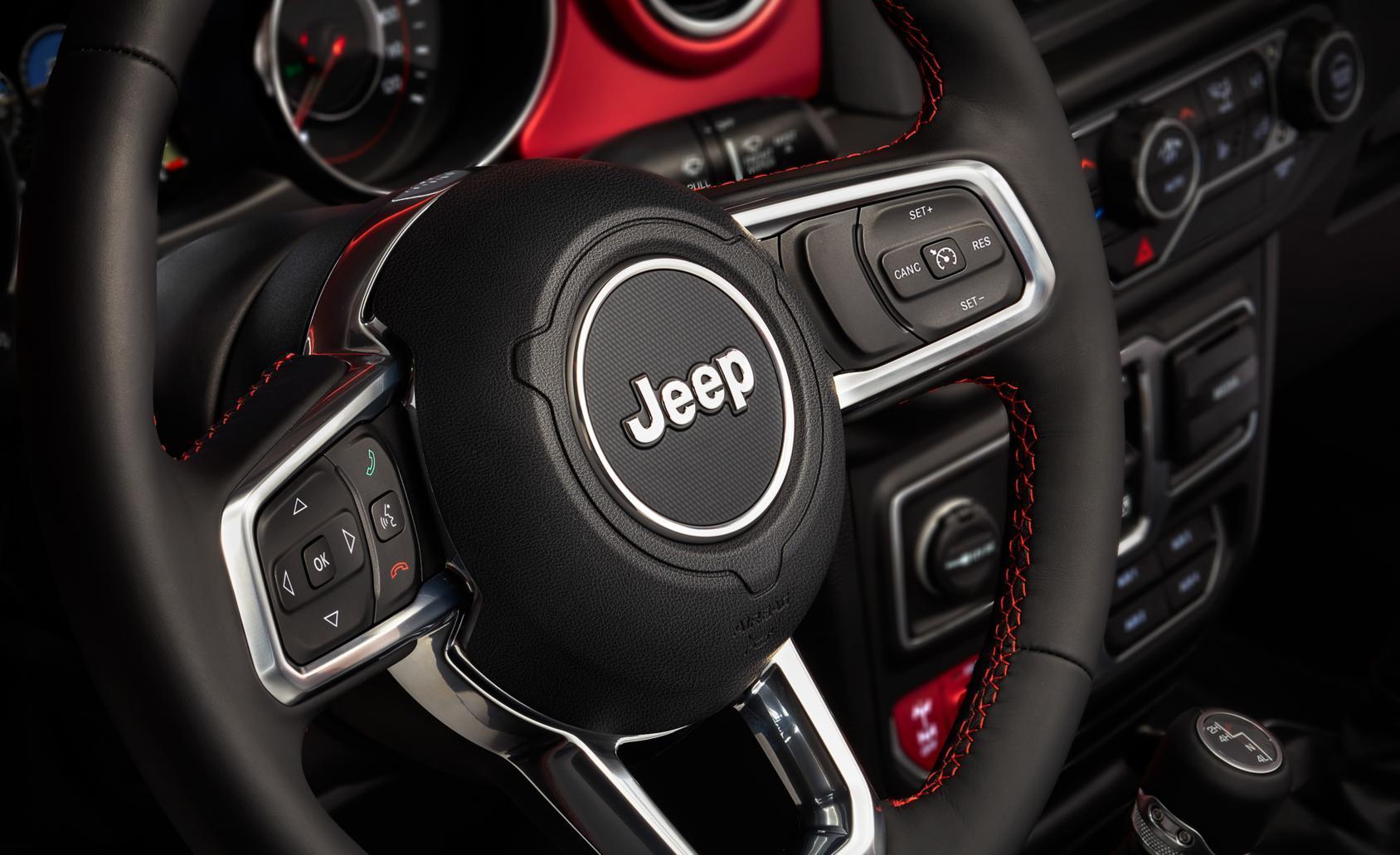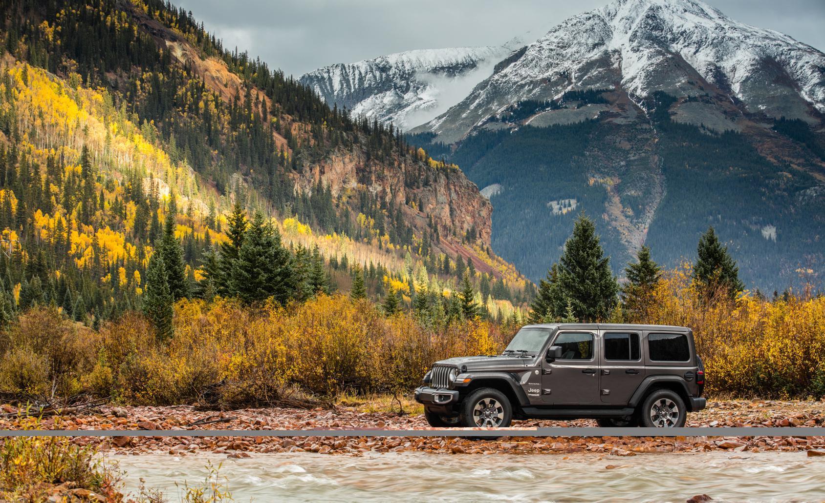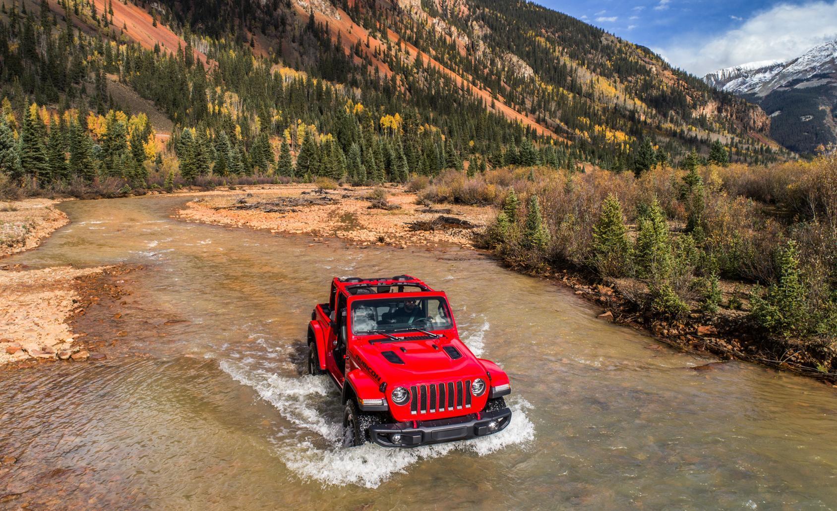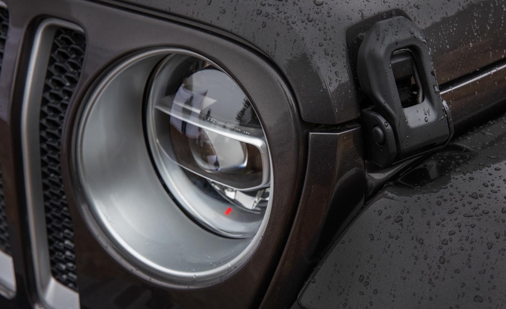 Wrangler drivers will be able to ford up to 30-inches or water. While the design is all new, the vehicle still looks like a Jeep. It packs round headlights and square taillights; the aerodynamics are improved without sacrificing the iconic square shape of the car. The Wrangler JL can be had on highly-equipped versions with a power folding soft top, which is a first for the line.