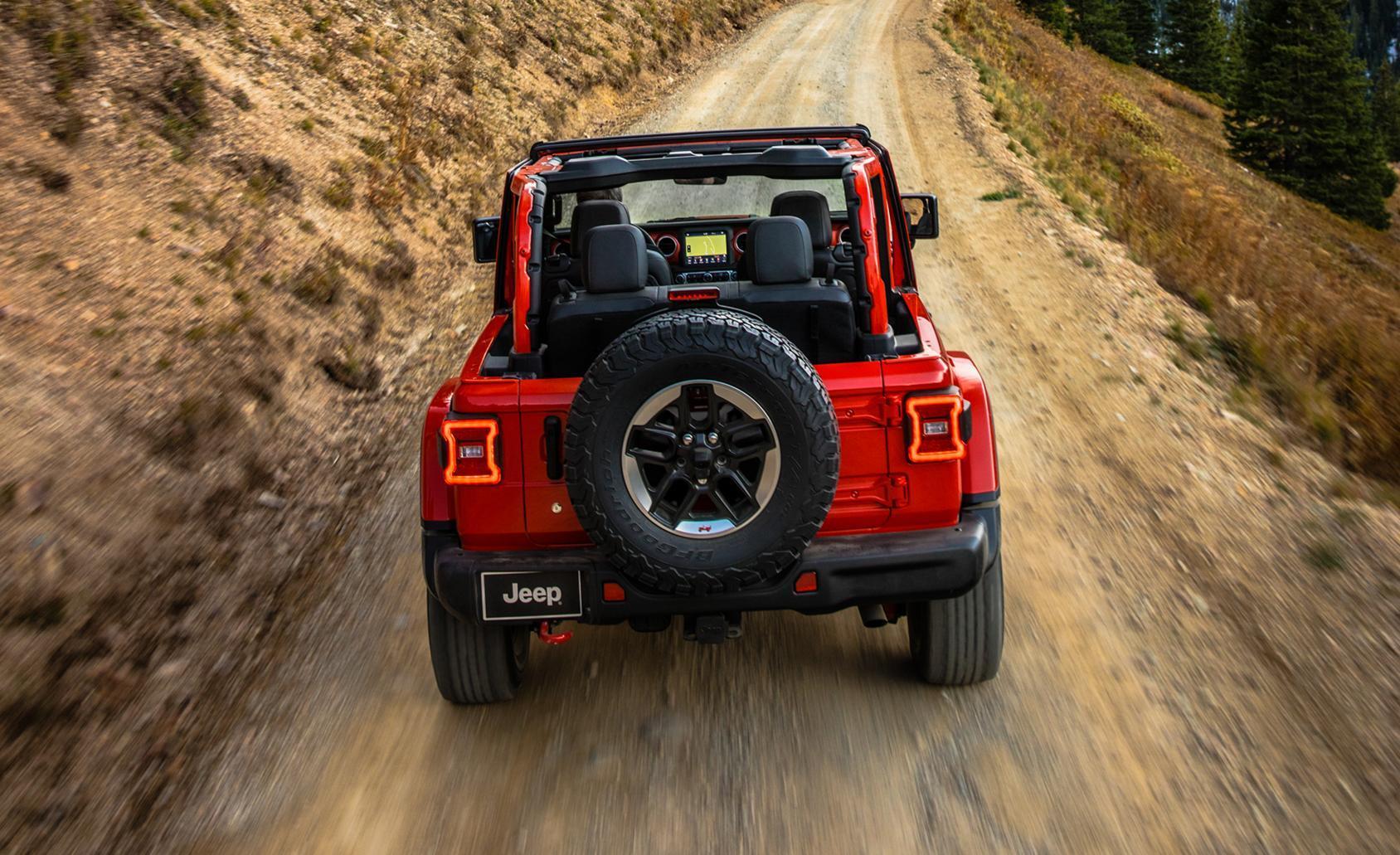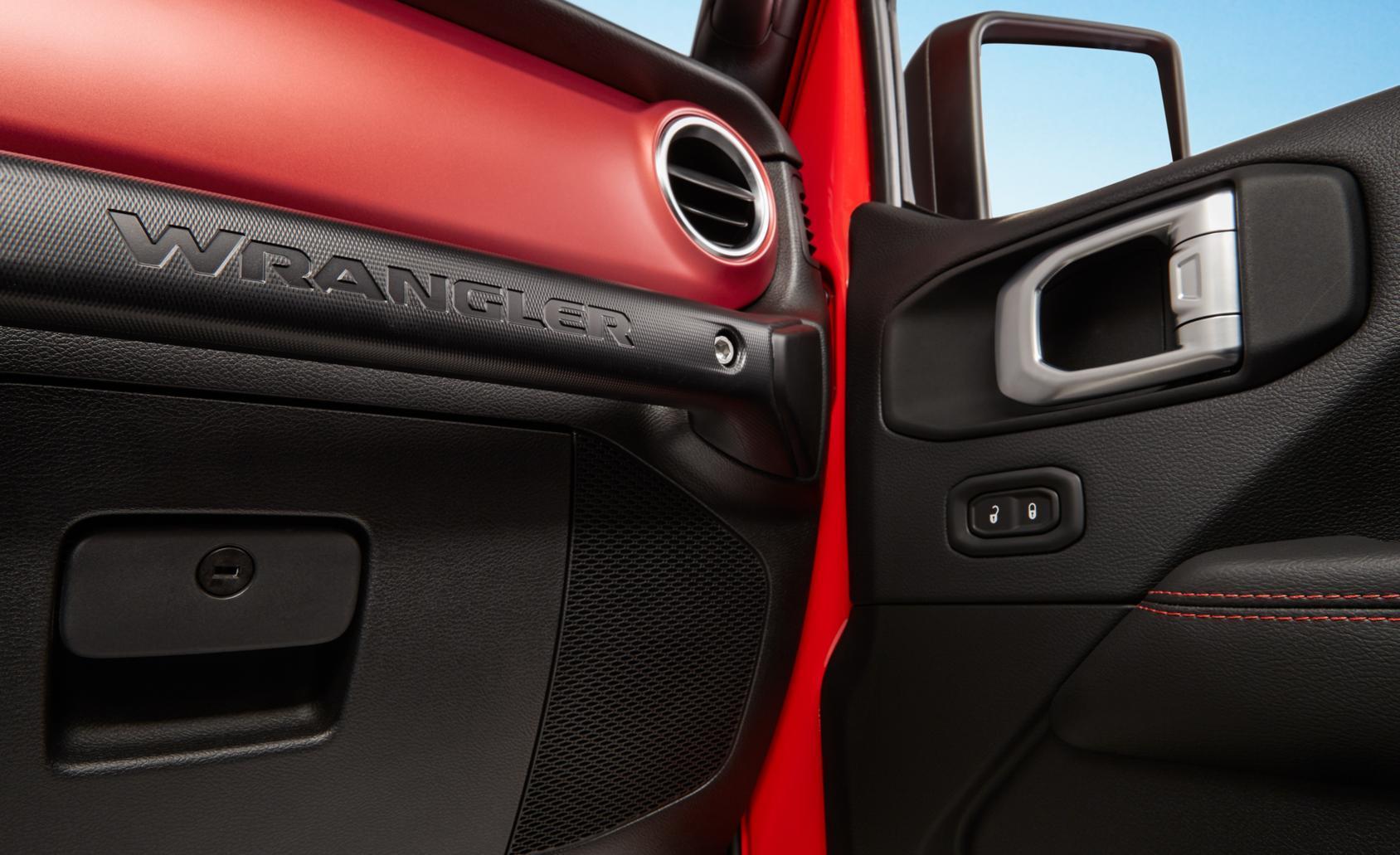 Two premium hard tops are offered that are lighter and easier to remove. The new Wrangler uses weight-reducing aluminum doors, hinges, hood, fenders, and windshield frame. The swing gate is made of magnesium. The reduced weight helps to boost fuel economy. The suspension is tuned for on-road handling and ride comfort without negatively impacting the off-road capability of the Wrangler.