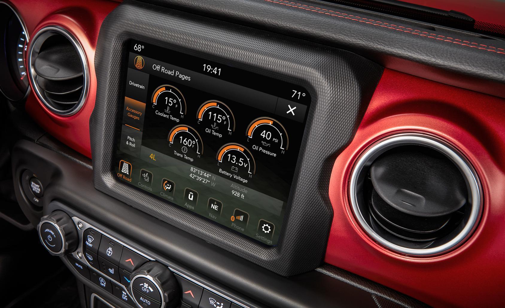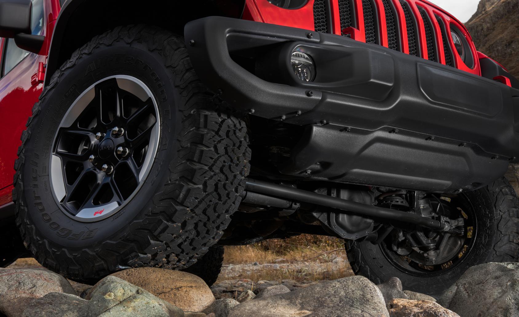 The Wrangler has Dana axles, and a new Selec-Trac full-time 2-speed transfer case, Tru-Lock electric front an rear axle lockers, Trac-Lok limited slip diff and 33-inch off-road tires. Jeep says that the JL has industry-leading ground clearance, approach, breakover, and departure angles.
