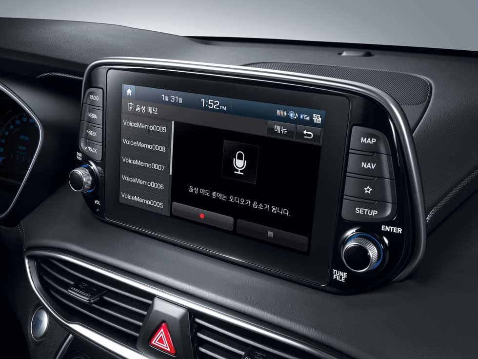 The base engine is a 2.4L inline four making 185 hp and the mid-range is a 2.0L turbo four making 232hp. All engines use the same 8-speed automatic. The Santa Fe gets HTRAC all-wheel drive. A HUD is available that projects an 8.5-inch image on the windshield giving driving information and navigation information. Pricing is unannounced at this time. The images are of a Korean version of the vehicle, presumably, the US version will look the same.