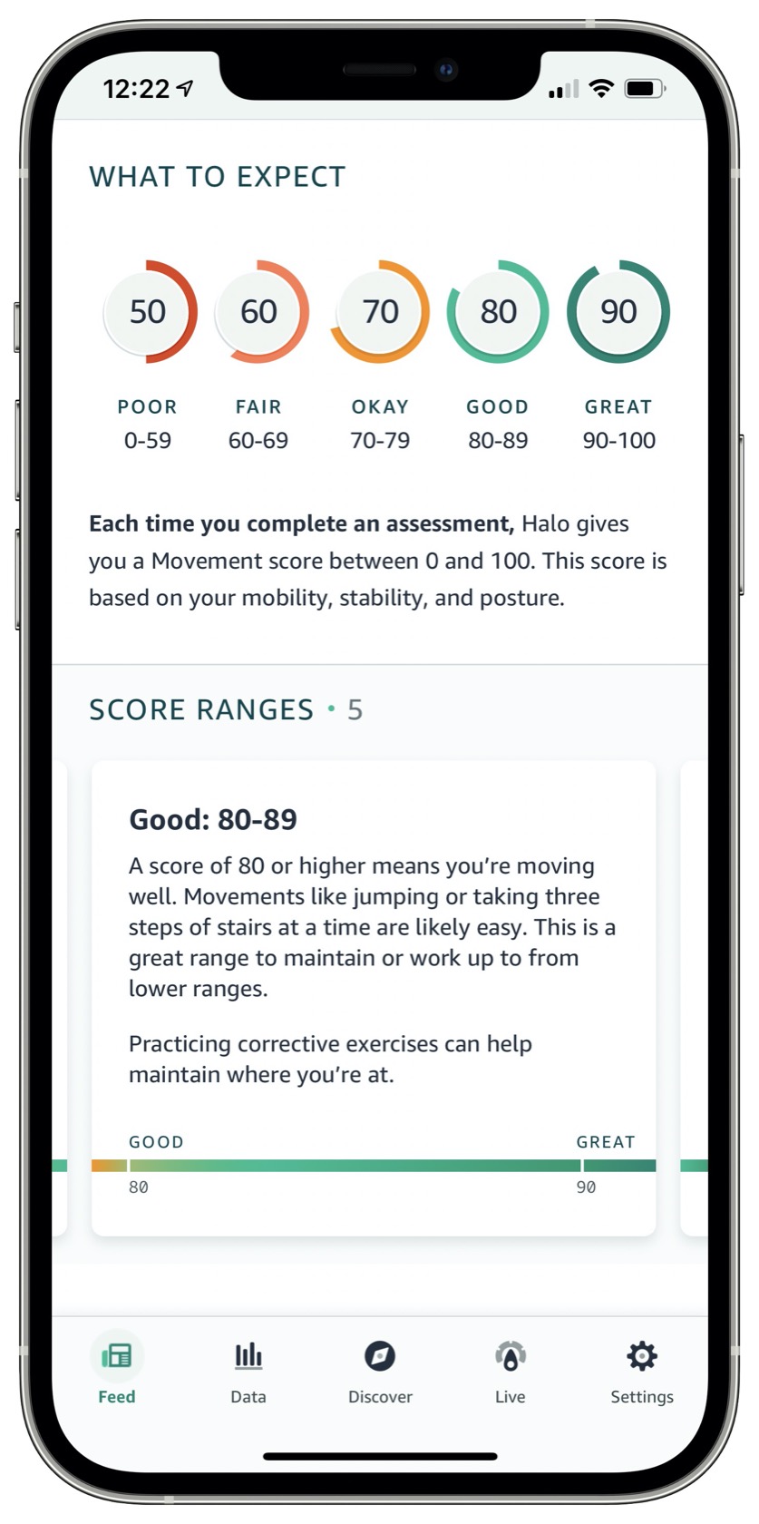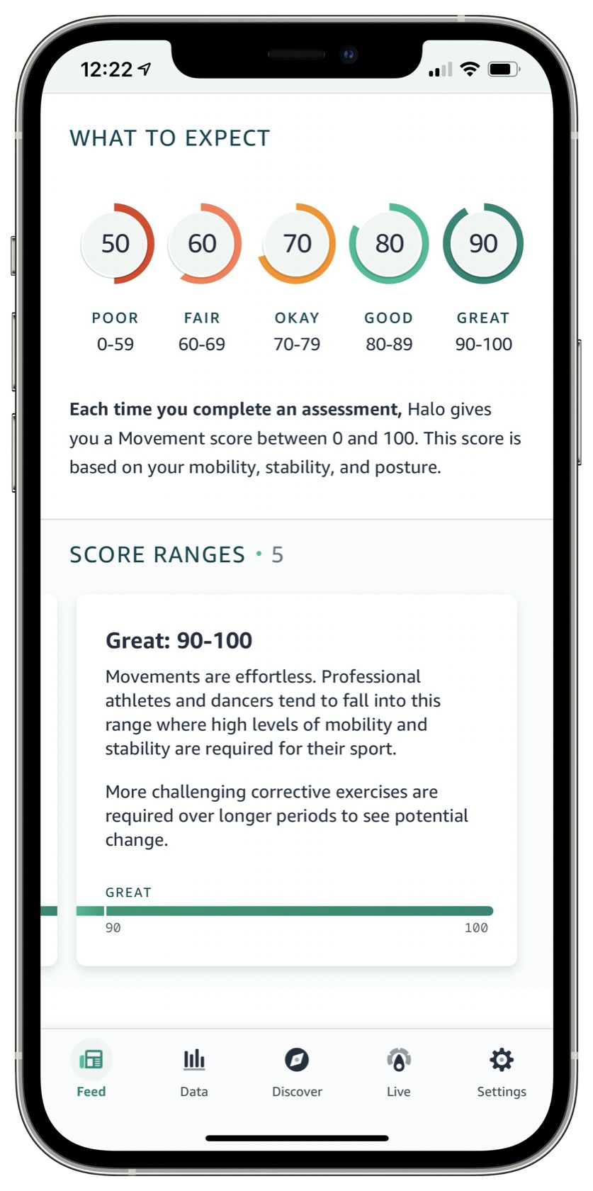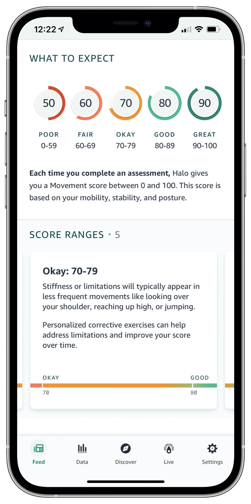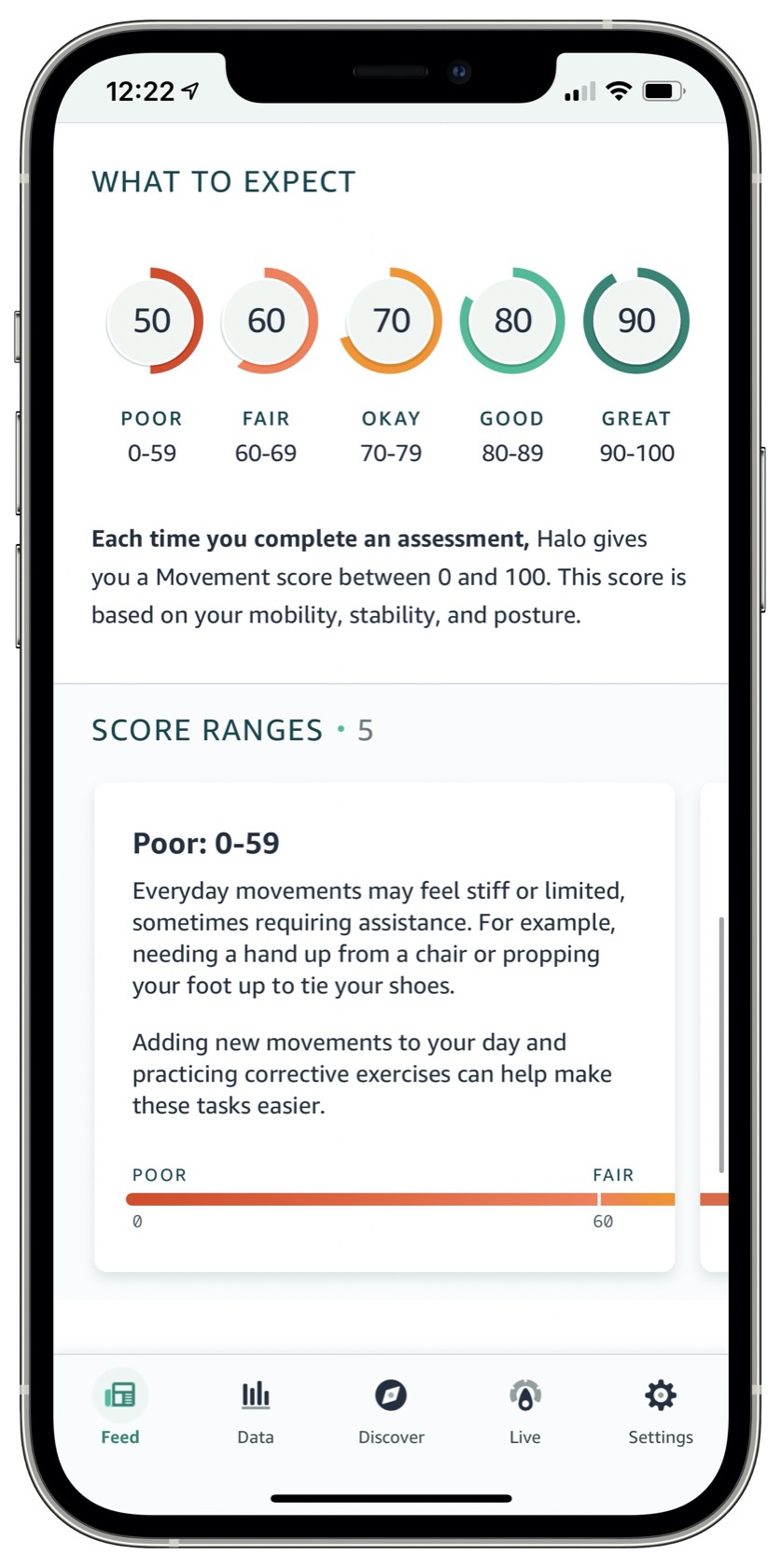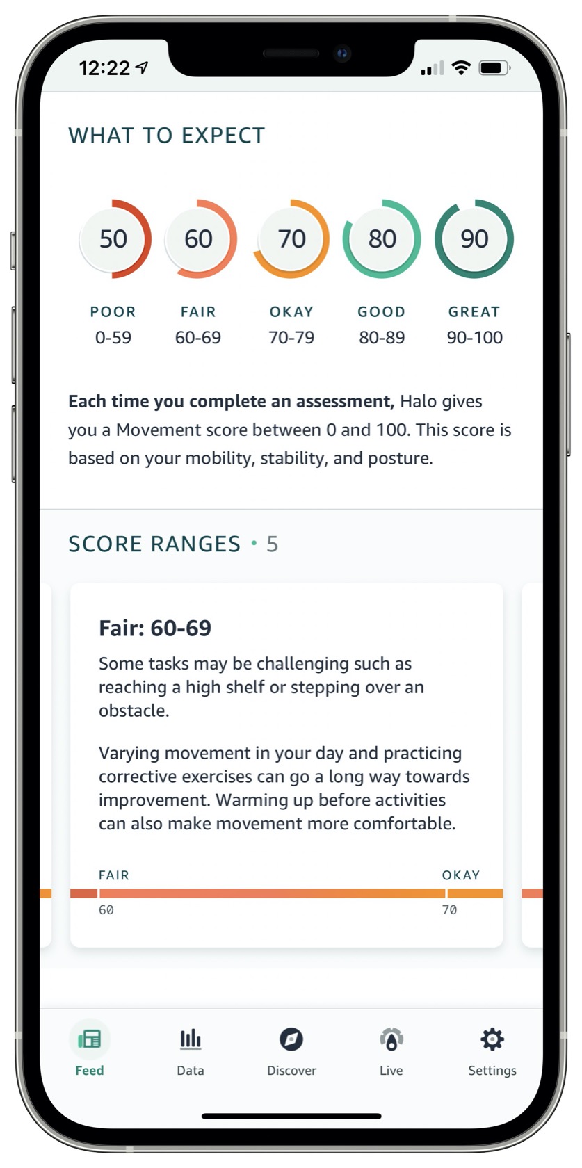 Amazon does a good job of breaking down what each aspect means – and what you can hope to achieve if you follow Halo's so-called corrective exercises. I scored best in Stability and Posture, for example, and slightly lower in Mobility: the app highlighted "minor challenges" in my hip and trunk mobility, for instance. You can tap through on each portion of the body assessed, and see more specific details.
