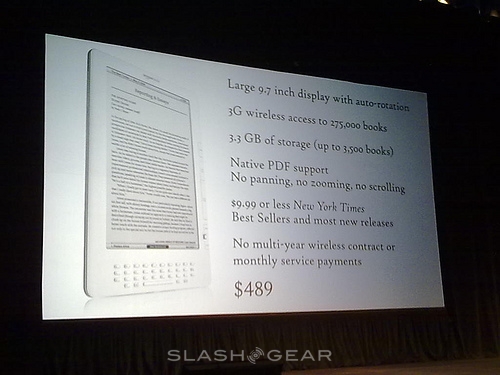 Amazon announced the Kindle DX this morning, an e-reader with a 9.7-inch E Ink display, integrated 3G, an onboard PDF reader and 3.3GB of internal storage, enough for up to 3,500 books. The larger Kindle will go on sale this Summer, alongside the existing Kindle 2, priced at $489.
