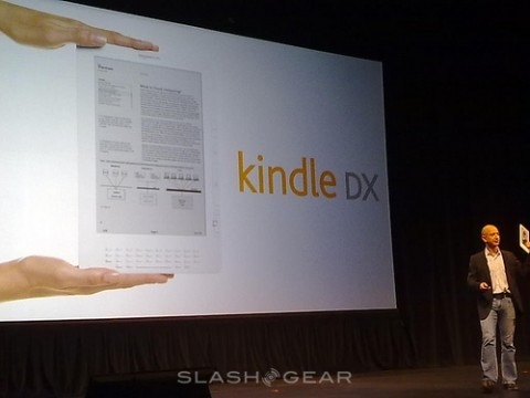 Amazon announced the Kindle DX this morning, an e-reader with a 9.7-inch E Ink display, integrated 3G, an onboard PDF reader and 3.3GB of internal storage, enough for up to 3,500 books. The larger Kindle will go on sale this Summer, alongside the existing Kindle 2, priced at $489.