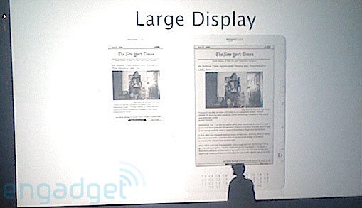 As for the device itself, it's believed to have an integrated PDF reader and "the ability to add annotations in addition to notes and highlights"; we're assuming this latter part will involve tapping in text notes, perhaps that show up as footnotes, rather than any sort of direct touchscreen notation. Meanwhile, a "more functional web browser" is also tipped, and the usual wireless Whispernet connection is onboard. No word on price as yet, but the New York Times is said to be dropping its monthly subscription to $9.95 (from $13.99). More details at tomorrow's press conference.
