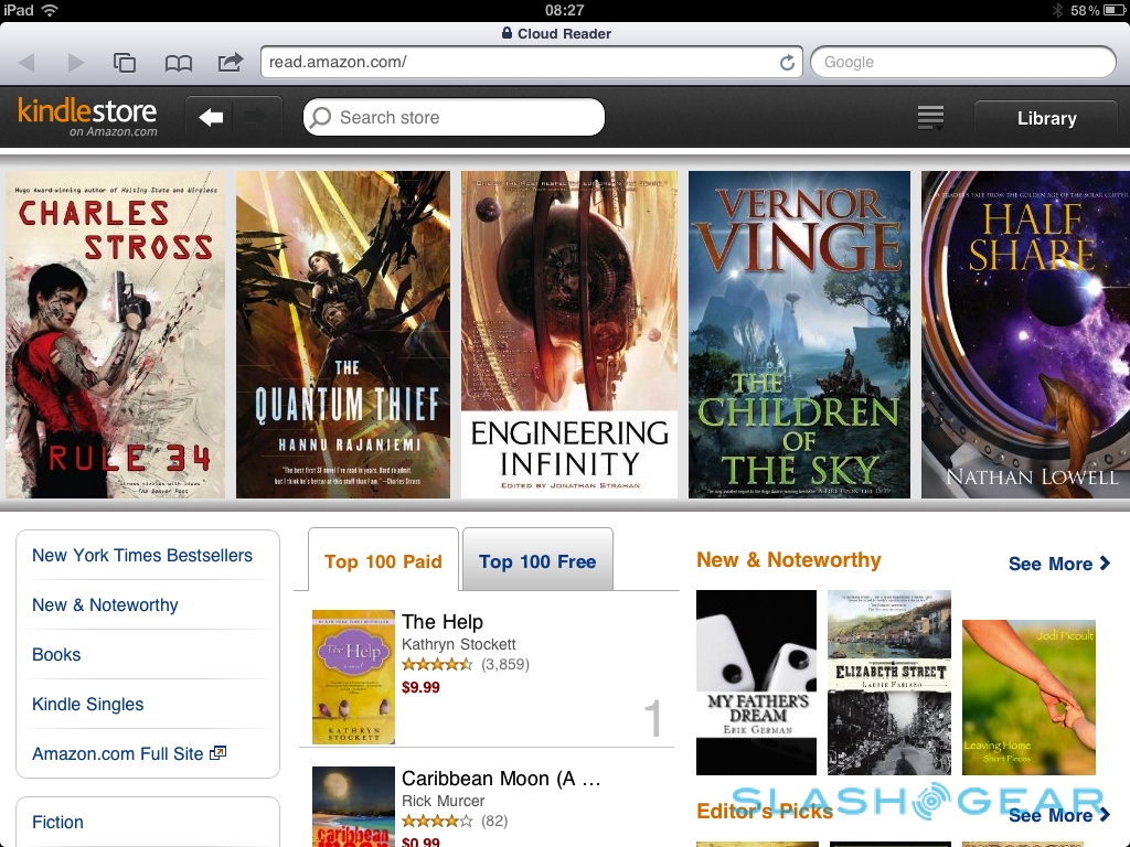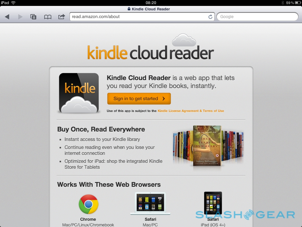 Amazon has launched a new Kindle web-app, targeted at Apple's iPad, and offering a workaround for the new limitations on in-app store links. The HTML5 app – found at read.amazon.com - can store ebooks directly to your iPad for offline reading, as well as offer tight integration to a custom version of the Kindle ebook store.
