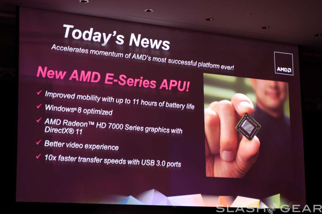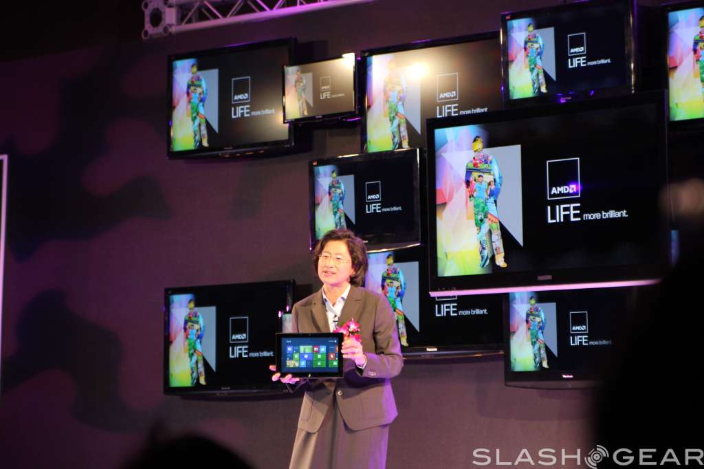 AMD has already waxed lyrical about the benefits of its 2nd-gen Trinity APUs, but the company brought along some more prototypes to Computex 2012 including a Transformer-aping tablet and dock. The Compal-made reference design is built around an 11.6-inch 1366 x 768 touchscreen and runs Windows 8, with AMD claiming its several years of collaboration with Microsoft on the next-gen OS means significant performance advantages over Intel- and ARM-based alternatives.