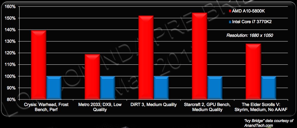 Meanwhile, AMD says, the standard abilities of Intel-powered PCs aren't keeping up with those uses. 60-percent of laptops ship with integrated graphics only, AMD's head of desktop and software product marketing Sasa Marinkovic, told us, and that despite 3rd Gen Core chips having their own onboard GPU, they're still not quite up to scratch. "30fps at 1080p is not something [Intel] can do easily with Ivy Bridge" Marinkovic says, but Trinity can.