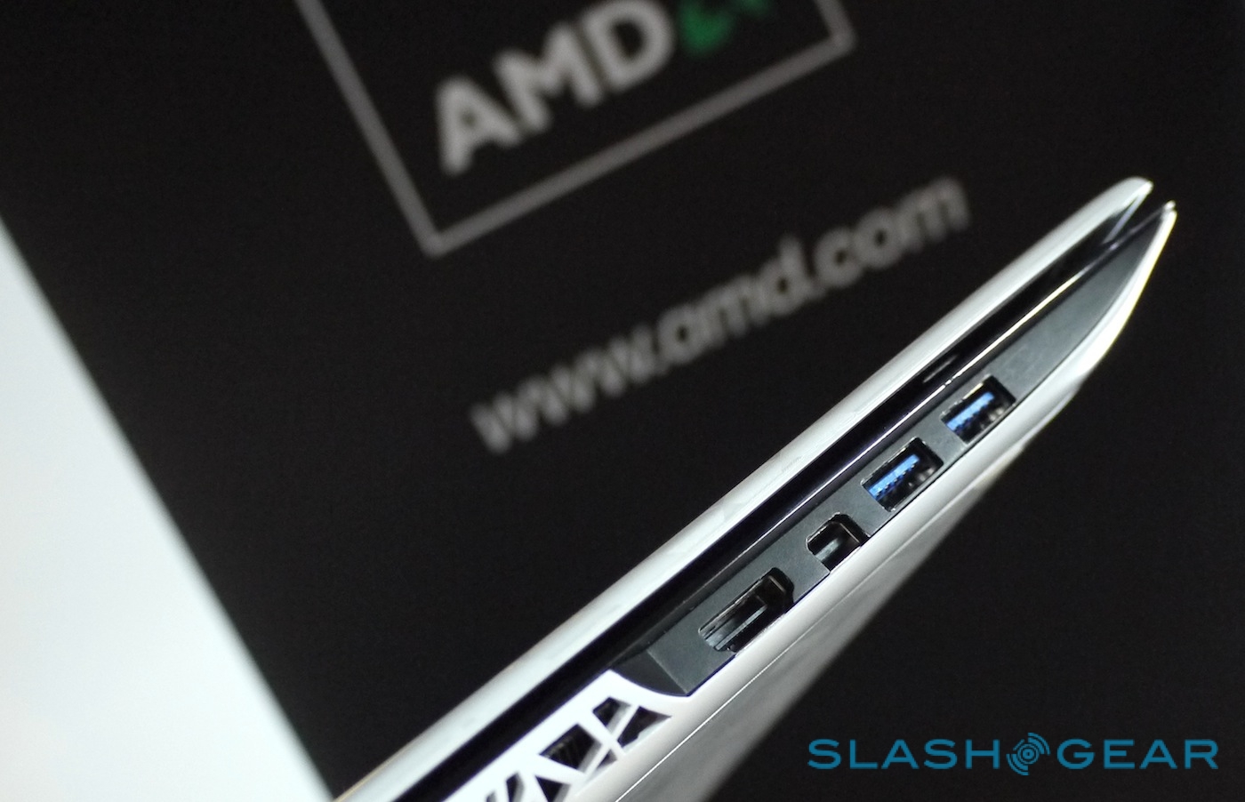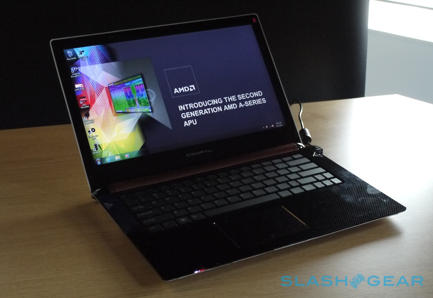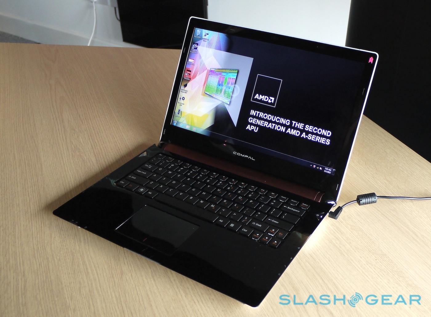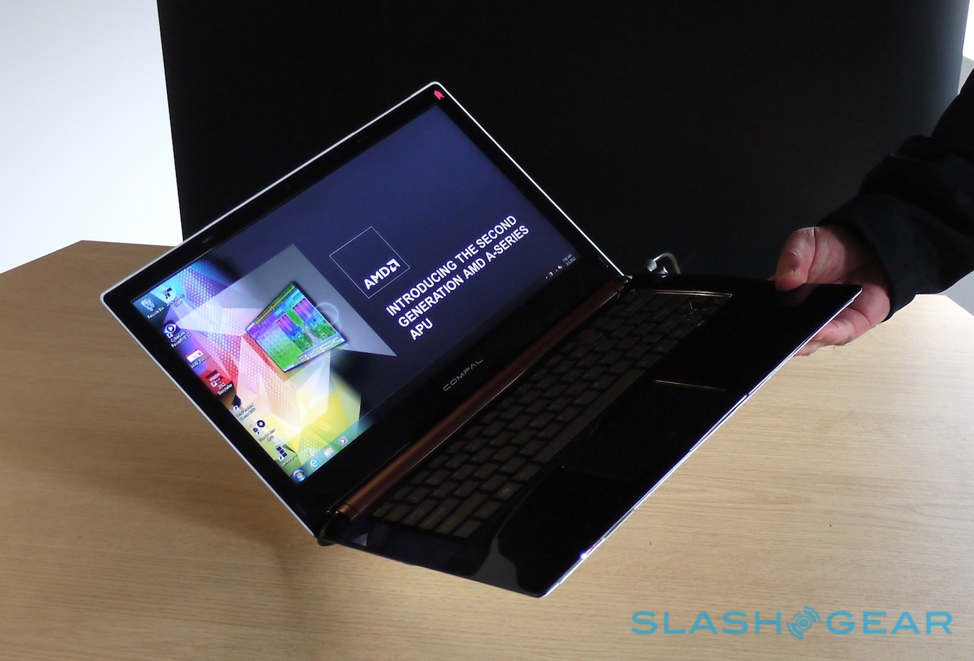 It's Trinity-based ultrathins that will undoubtedly catch the most attention, though, going up directly against Intel's pet ultrabook project. AMD showed us a Compal ultrathin reference design, as thin as its ultrabook rivals, though certainly not yet ready for primetime with its chassis flex and plasticky build. Nonetheless, it was capable of outputting 1080p Full HD video to two separate external displays while simultaneously running its own LCD.