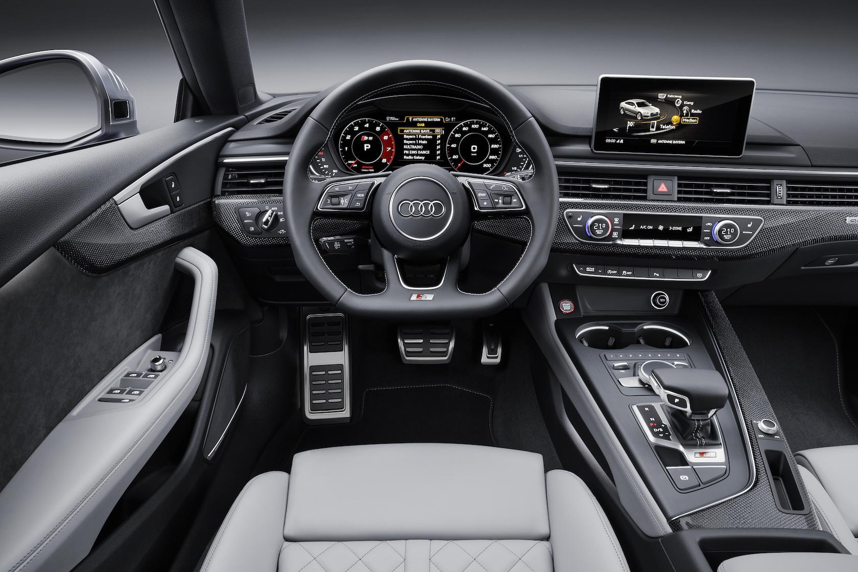 Style-wise, there's a 3D decorative inlay trim that begins in the doors and spans right across the dashboard. A panoramic sunroof is standard. It's not just about looks, though: there's twice the cargo capacity of the A5 Coupe, for instance.
