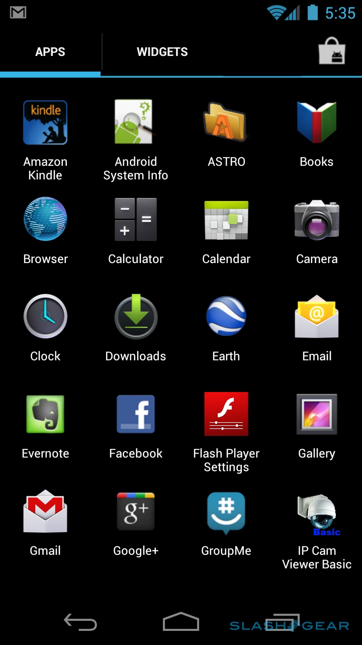 The app switcher – with thumbnail previews – has been carried over from Honeycomb, and you can either swipe to end it or, by tapping and holding the thumbnail, remove it from the list or open its info. There a "Force Close" option can be found. Unfortunately, tapping and holding any of the five desktop panes – which don't zoom out into an overview of all five – now only brings up options to change the wallpaper. If you want to add a shortcut or widget, you now have to do that from the app menu: either press and hold an app icon to place it, or swipe over to the widgets menu to choose from a gallery of active content. The app menu itself now scrolls horizontally, not vertically.