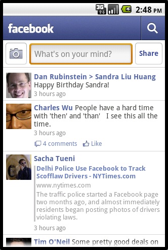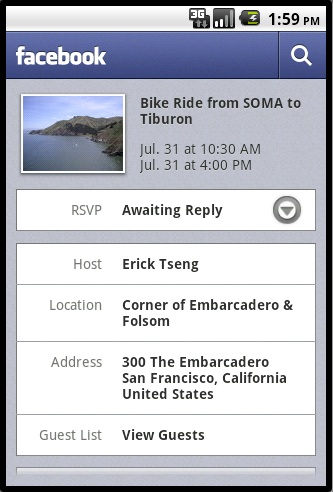 Event viewing and RSVPs can also be sent from within the app, and there's a new homepage with a draggable notifications drawer. Finally the update system has been streamlined, so it's easier to post new status messages with fewer taps or clicks. Still not perfect, then, but far better than the last version; you can download Facebook for Android in the Android Market.