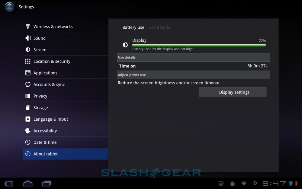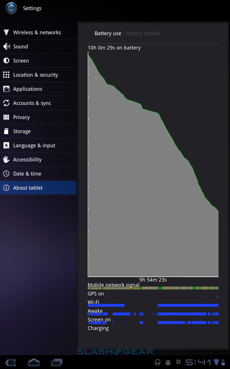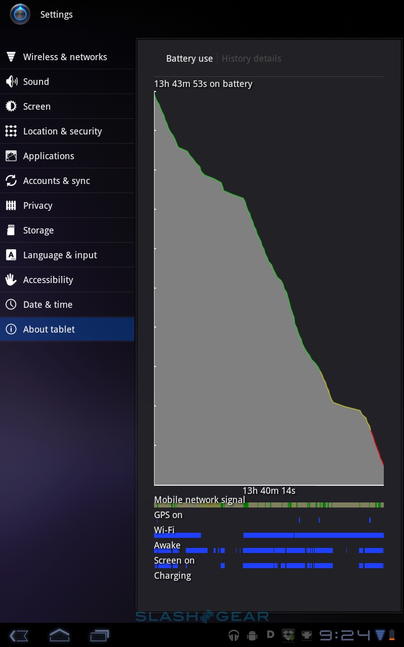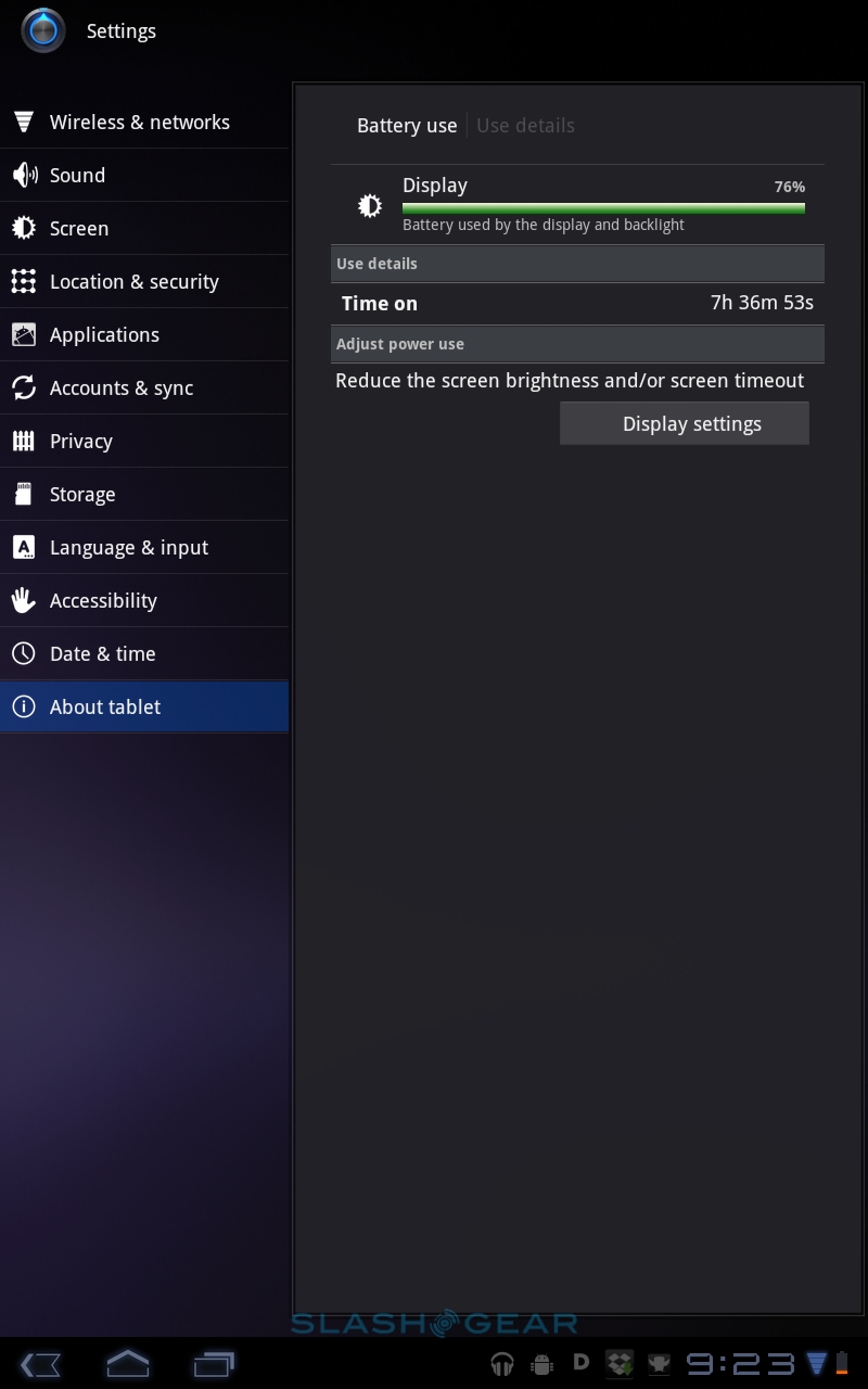 As for connectivity, Android 3.0 has mobile hotspot support for sharing 3G/4G data with up to five WiFi-tethered clients, thought you'll likely have to opt for a more expensive data package before the carriers will let you do so. There are three sharing options, USB tethering, portable Wi-Fi hotspot and Bluetooth tethering. As on Android phones, it works well, though battery life takes an inevitable hit.