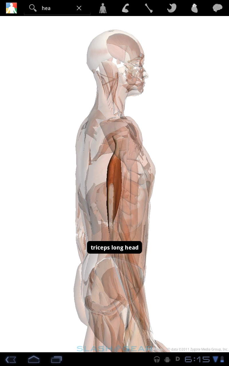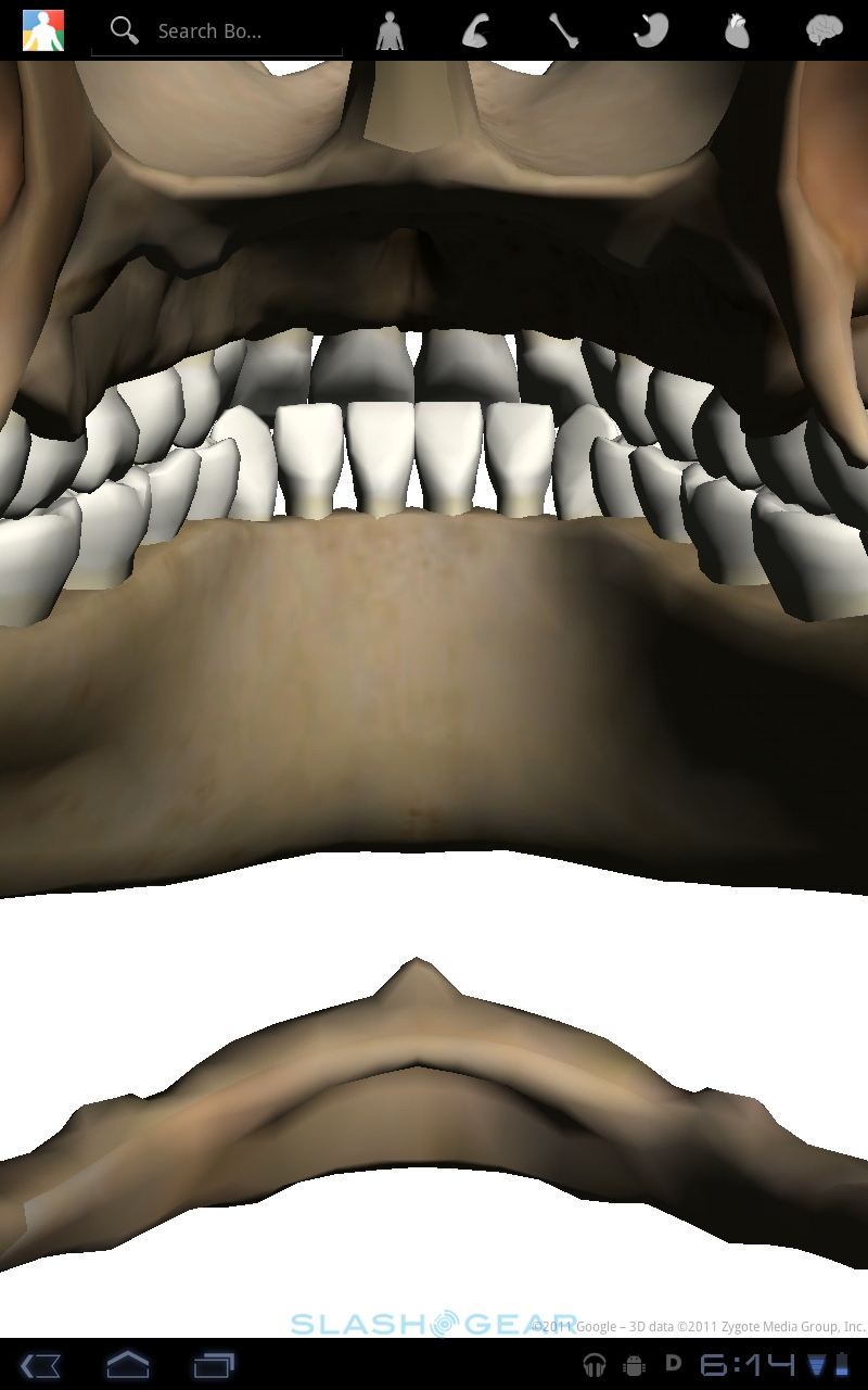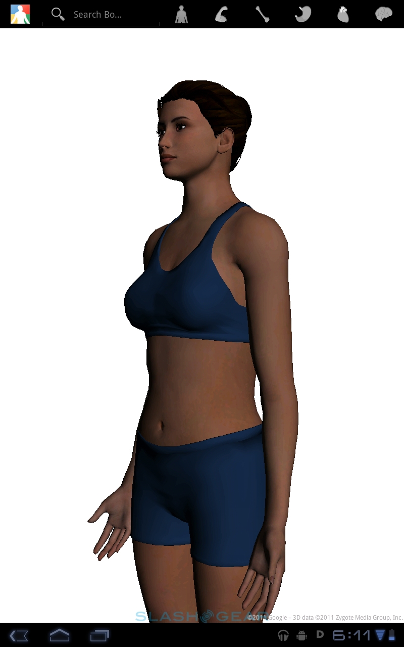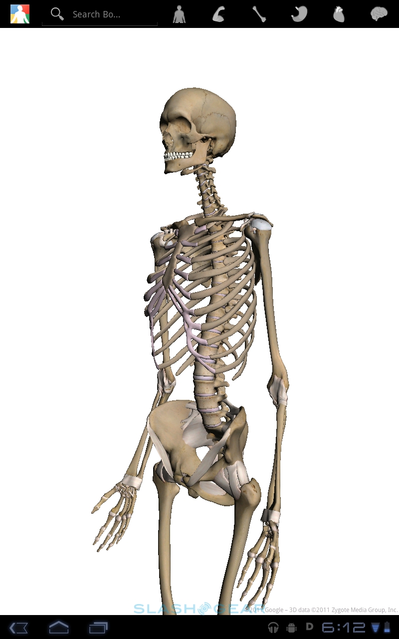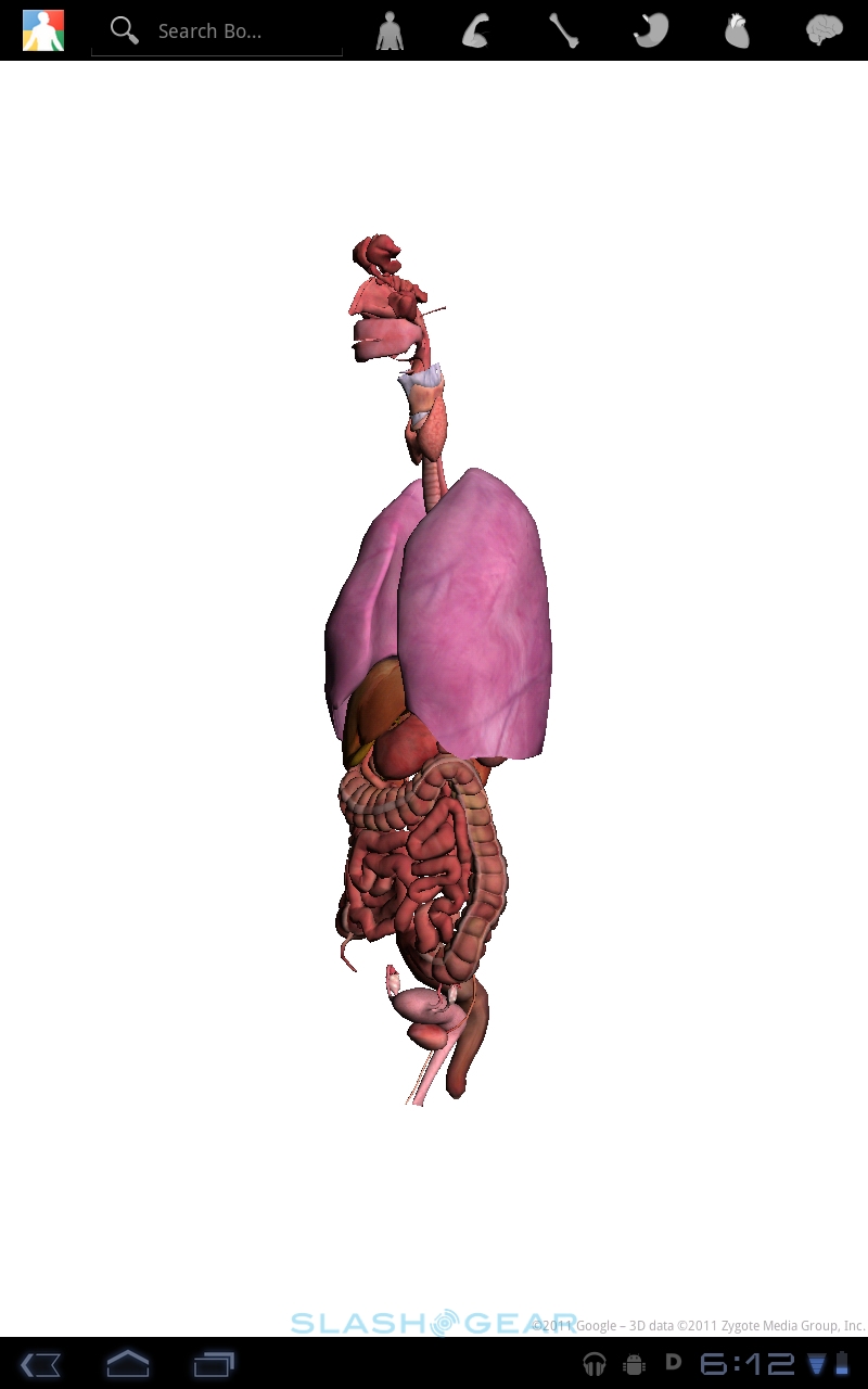 Google provided three Honeycomb-optimized apps for us to look at, the Body app demonstrated at the Android 3.0 launch, Grocery IQ from Coupons, and a new version of the Pulse news reader. Body is utterly amazing, an educational title that allows you to strip back the human form to muscles, organs and skeleton, with labelling and search functionality. Grocery IQ is much the same as the Android phone version, allowing you to create and manage shopping lists on your device and sync them with the web and to other phones and tablets.
