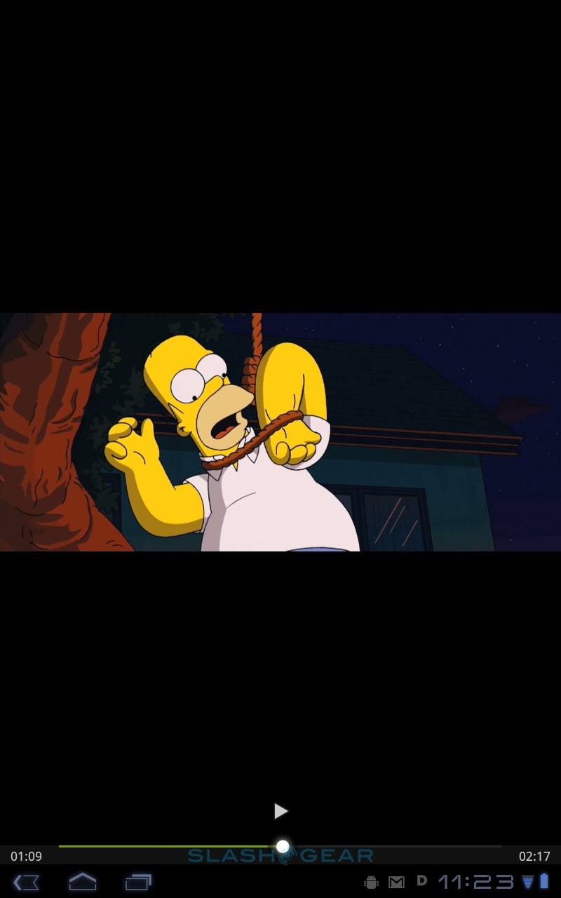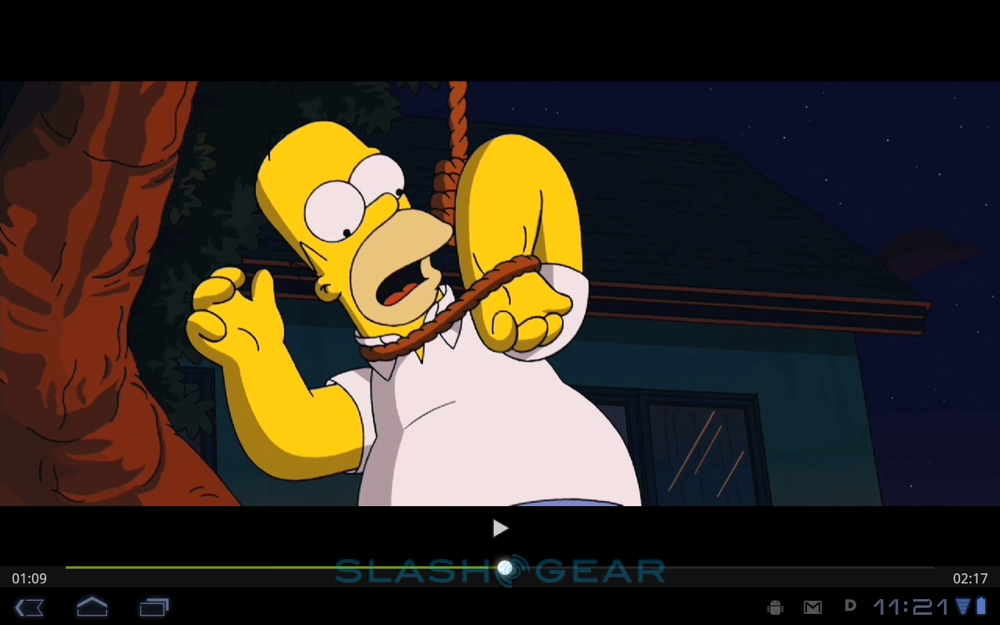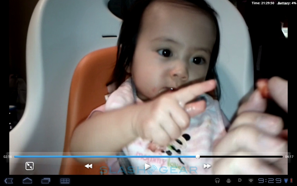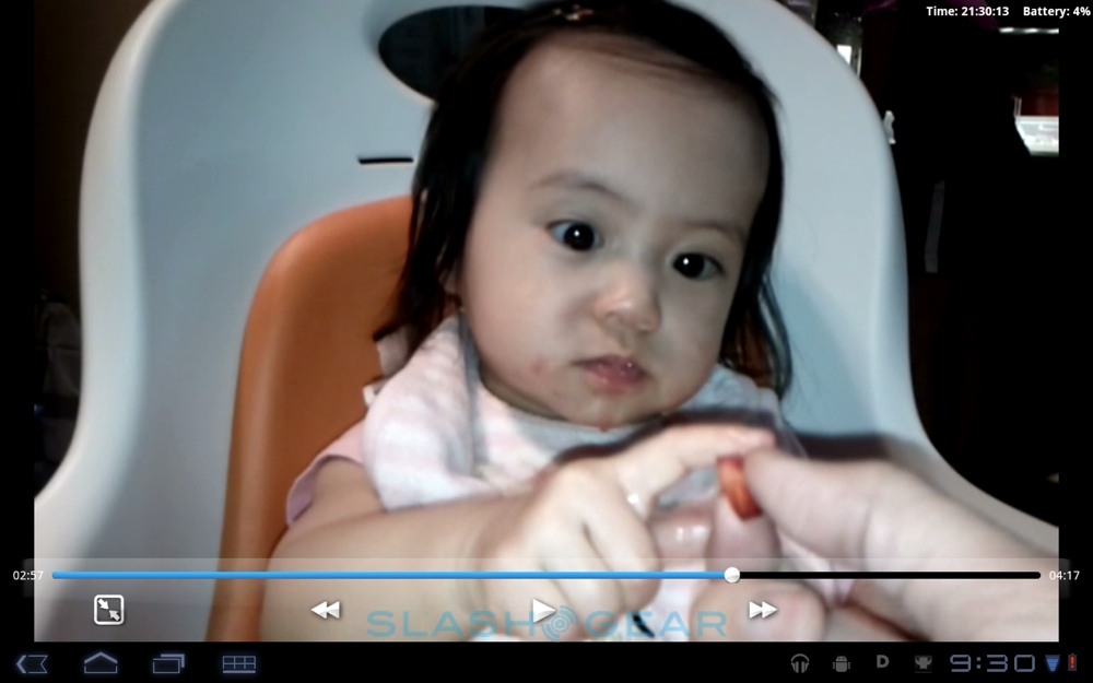 Video playback works from a straightforward grid or list view of files, though Google is yet to significantly boost the list of codecs Android supports. In Honeycomb there's H.263, H.264, MPEG-4 and VP8, in .3gp, .mp4 and WebM containers, which is a pretty poor showing considering the multimedia ambitions – and capabilities – of the sort of processors to be found inside Android 3.0 tablets. We turned to RockPlayer and vPlayer, found in the Android Market, to fill in the gaps, and these worked well, playing full-screen on the XOOM and outputting high-definition video via HDMI.