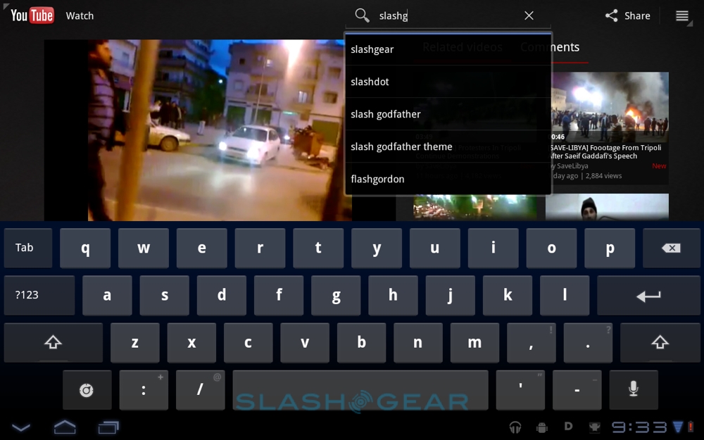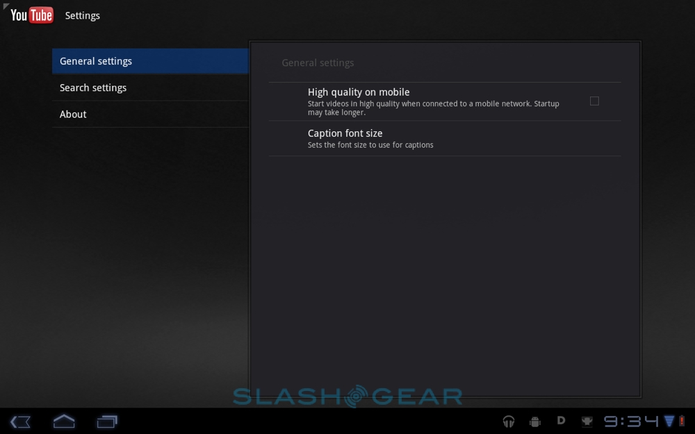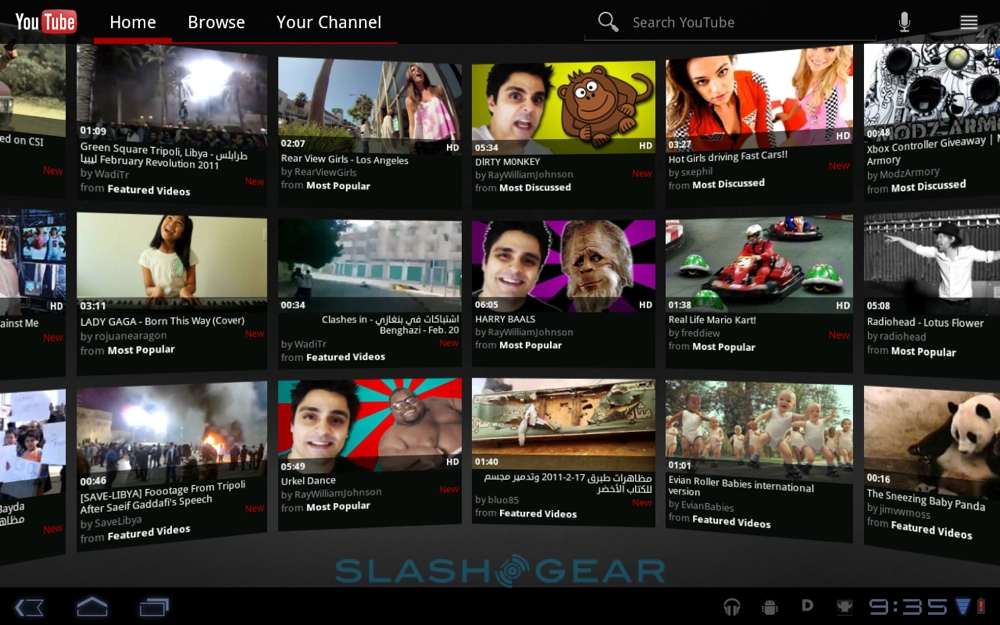 As on Android phones, there's a dedicated YouTube app for streaming video, useful given the lack of Flash support at launch. This has also had a makeover, with a new 3D wall of videos to choose from. It's more to show off Honeycomb's 3D acceleration than anything else, but it works and there's channel and search functionality along with options to filter by video age. Given the bigger screens, it's useful to be able to change the font size for captions; you can also force Honeycomb to stream in high quality even when on a cellular connection.