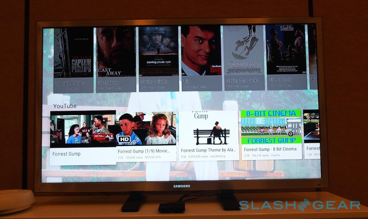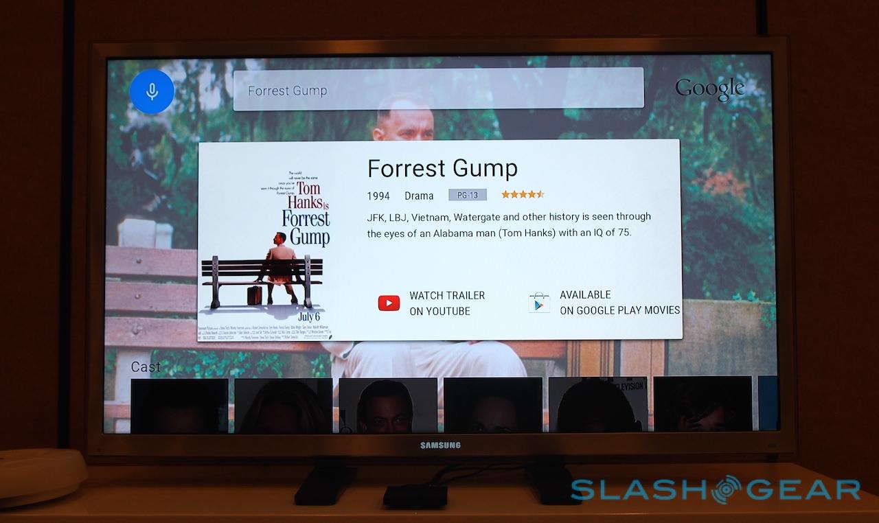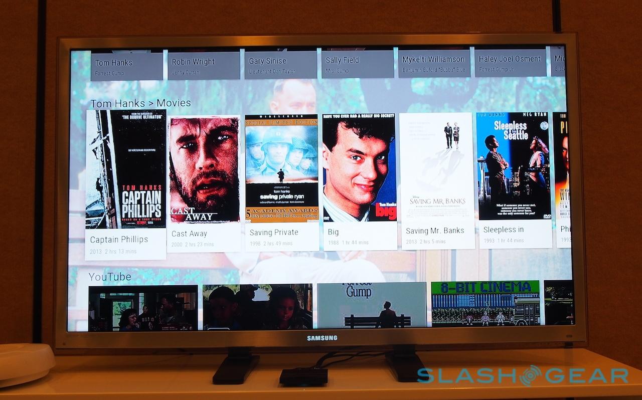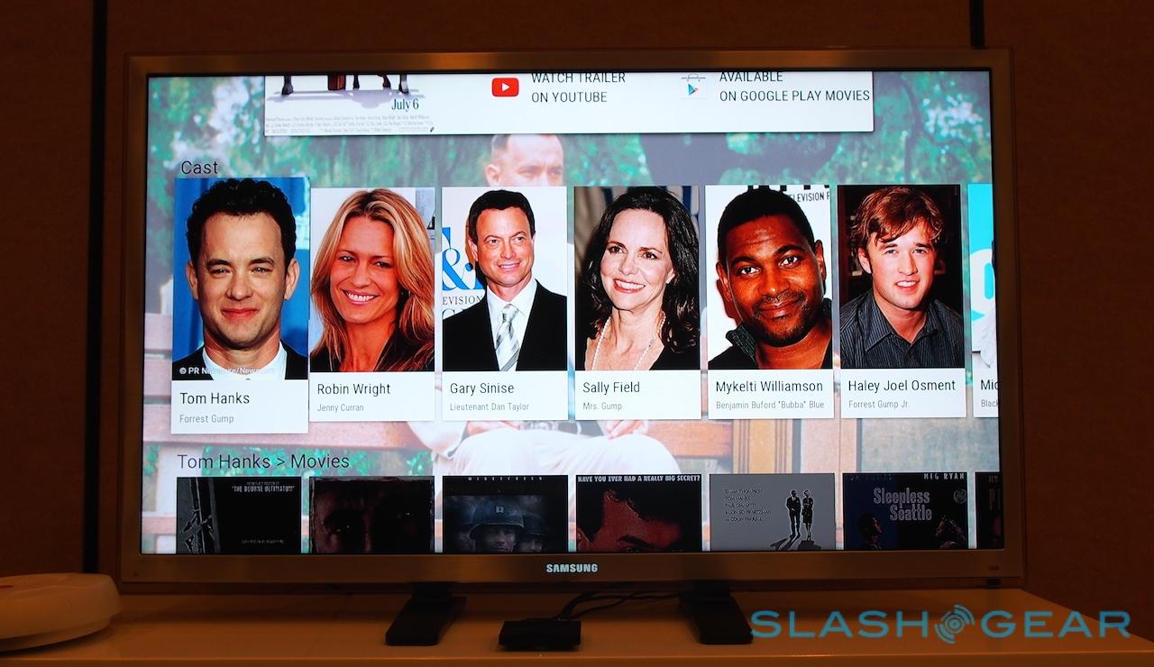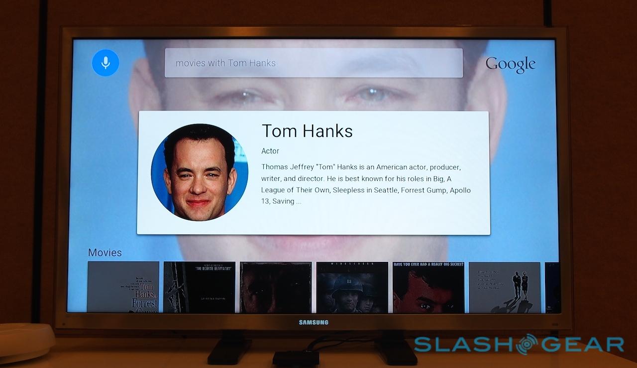 There are some rough edges, of course, just as you'd expect. Google's voice search is front and central to the navigation, pulling up not only movie and TV titles but actors with biographies, recent movies and TV shows they've appeared in, and related YouTube content. It'll also bring in results like currency and weight conversions, with the answers shown on-screen and read out.