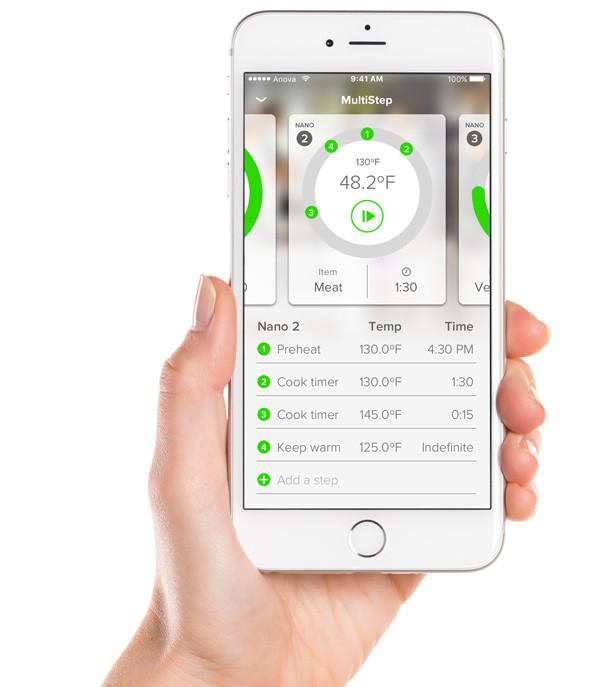 However if you're willing to get your phone out, there are some more advanced features you can unlock. Anova calls that MultiStep, and it's effectively a way to manage different temperatures over time, for the same meal. So, if you have two steaks in your water bath, and want one rare and the other medium, MultiStep will allow that.