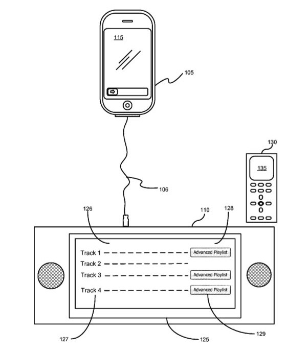 The patents collectively describe an ecosystem where peripherals could not only be controlled – and media playback managed – from the iPod/iPad itself, but conversely from the peripheral's own interface. One application covers remotely accessing an iPod playlist from a media player, while another documents using the peripheral's buttons and other controls to remotely operate the Apple device.