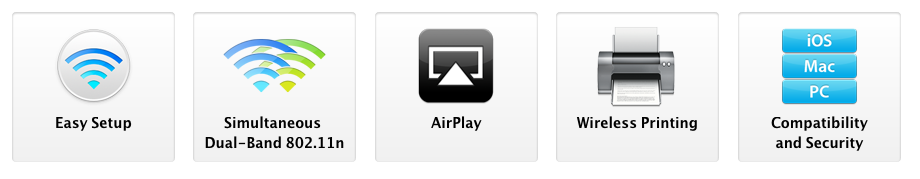 This updated device brings on a complete hardware redesign and allows the AirPort Express simultaneous dual-band Wi-fi. It looks one whole heck of a lot like the Mac Mini or the Apple TV now, and works with the same frequencies it had before, 2.4GHz and 5GHz 802.11n Wi-Fi, but can now work with both at the same time. Also this device works with two ethernet ports for wired connections and works with the same USB 2.0 and 3.5mm headphone jack as in previous models.