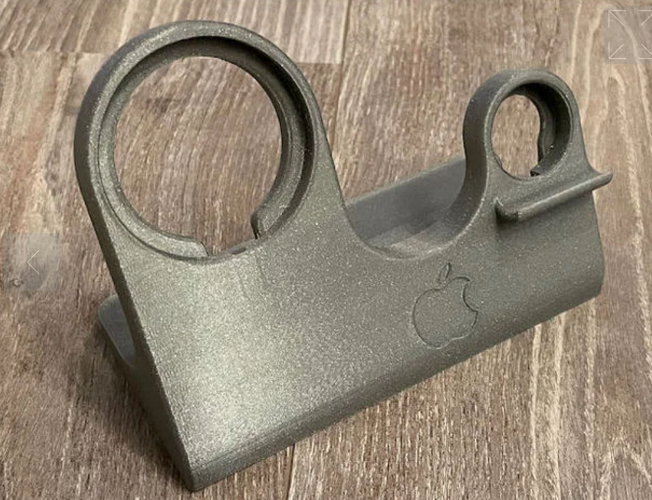 The user, DonSonsi, posted details of the product on Reddit and Thingiverse. DonSonsi wrote that three versions of the device have been created so far, including a "default" device, one without the Apple logo, and one with a 1.1 millimeter deeper watch base to support watches with cases or covers on them. The stand is designed to support the inductive Magsafe charging adapter for the iPhone 12 line of smartphones and the inductive charging adapter for the Apple Watch.