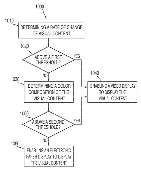 The hardware isn't the only special thing Apple is hoping to patent, however. The submission also describes a system of intelligent switching which would analyze to what extent the on-screen graphics and text were dynamic and moving, deciding between the two panels automatically depending on which is better suited to the content. So, static text would trigger the e-paper display, while video content would activate the LCD display. Alternatively, the color composition of what was being displayed could trigger the change.