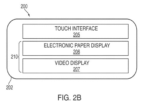 Rather than an all-or-nothing choice of either the electronic paper or LCD panels, the screen would be divided into segments which could selectively be set to show one or the other. That could mean video playback on the top half of the screen, using the color LCD, and text underneath, using the e-paper.