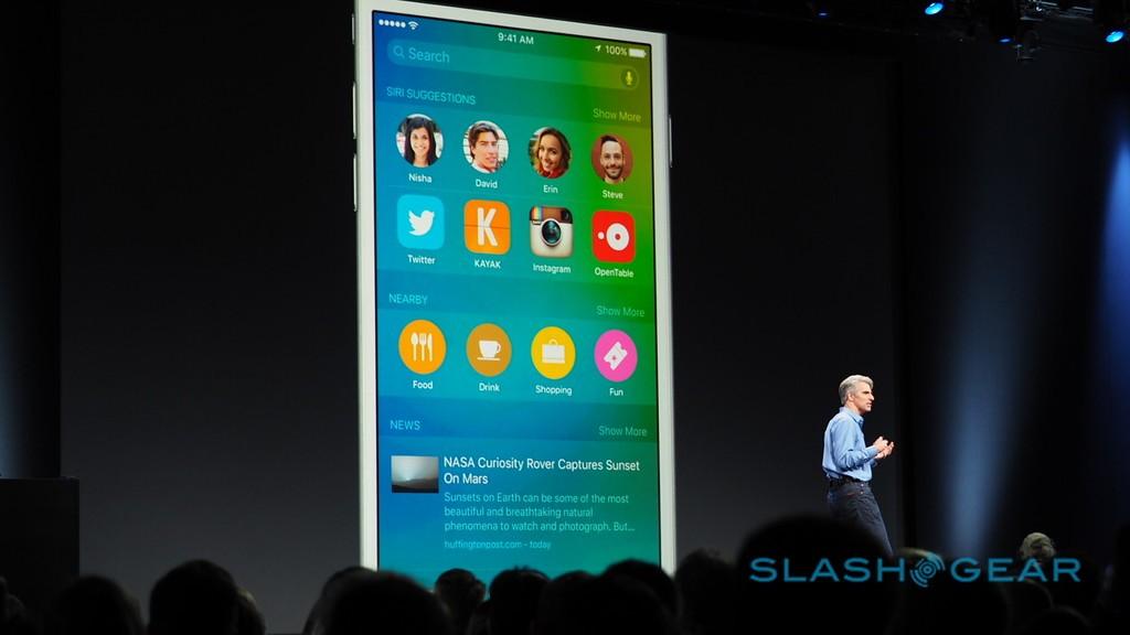 Apple has begun detailing iOS 9, and first off is a supercharging to Siri that will make the virtual assistant more flexible and contextually-aware. The new Siri will be more intelligent, Apple's Craig Federighi, as well as more proactive, with a revamped UI and the ability to make suggestions from a swipe across on the homescreen. Those suggestions will include contacts and apps – perhaps a recently-installed game that hasn't yet been played with – along with nearby locations.