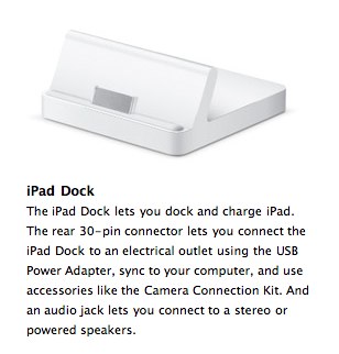 Apple didn't just announced the iPad – they also brought along some official accessories to use with it. Two docking stands, a pair of adapters and a case will go on sale alongside the iPad, and of the four the most interesting is probably the keyboard dock. That holds the tablet in portrait orientation, and provides a full-sized Apple keyboard on which to type.