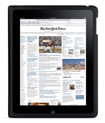 Finally, there's an official case for the iPad, complete with an Apple logo on the front. As well as hinging open, like a book, the case will work as a stand to hold the iPad upright in both landscape and portrait orientation. No word on pricing for any of the accessories as yet.