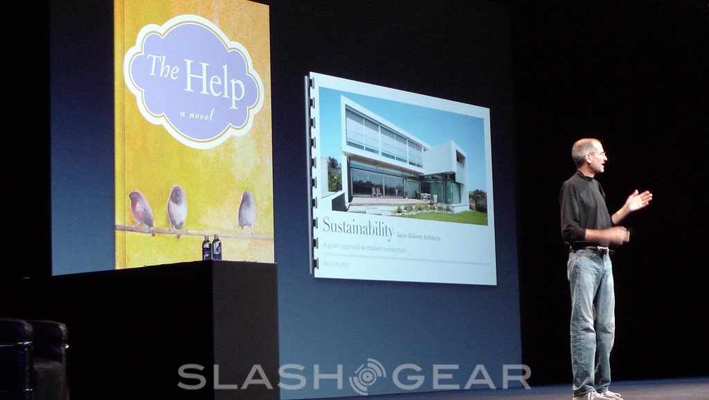 As for iBooks, that's only been out for 65 days, and already it's seen upwards of 5 million books downloaded from its digital bookshelf. That puts between 2 and three books on every iPad out there. There's going to be an update to iBooks later in June, which offers support for PDFs, as well as new bookmarking controls up in the right-hand corner. The PDF support will come in a brand new bookshelf, specifically designed for them.