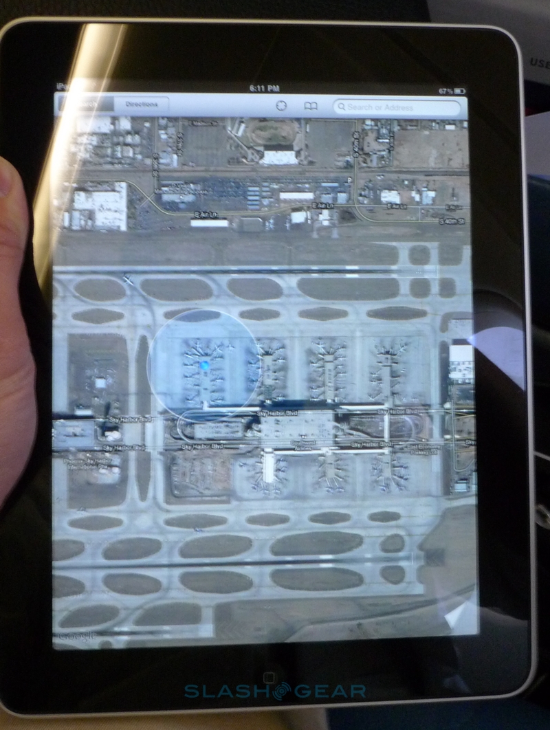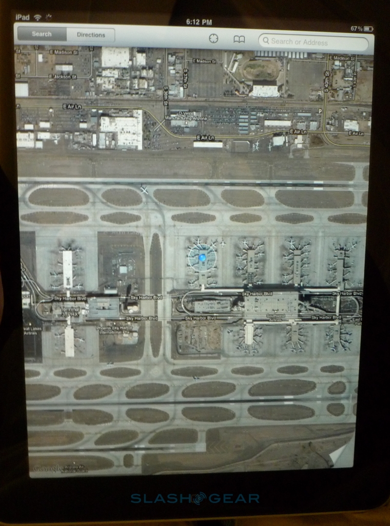 Maps should feel just like Google Maps on a desktop computer – the same experience stretched over a bigger display – but there's something far more intuitive about being able to put the iPad in your lap and pore over it as if it was a paper map. There's a lot less swiping around than on the iPhone version, simply because you can see more of the map at any one time. Standard, satellite and terrain cartography are available, together with Google Street View (which can be navigated using the integrated digital compass), and all the usual search features are present. Since A-GPS won't be available until the WiFi + 3G iPad models later in the month, the WiFi-only iPads use WiFi triangulation to figure out their position, just like the first-generation iPhone. We can't help but wish Apple had included a GPS chip in every model, though the basic triangulation does work reasonably well (in more urban environments, anyway).
