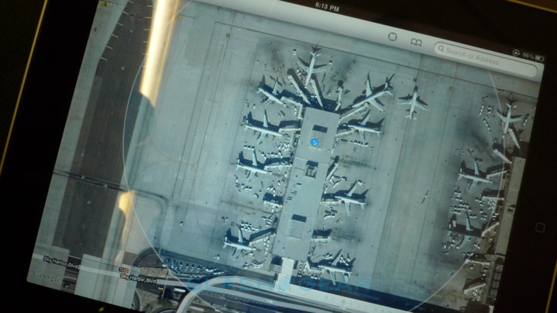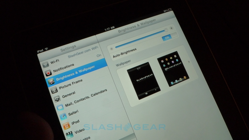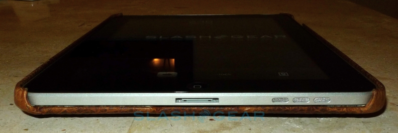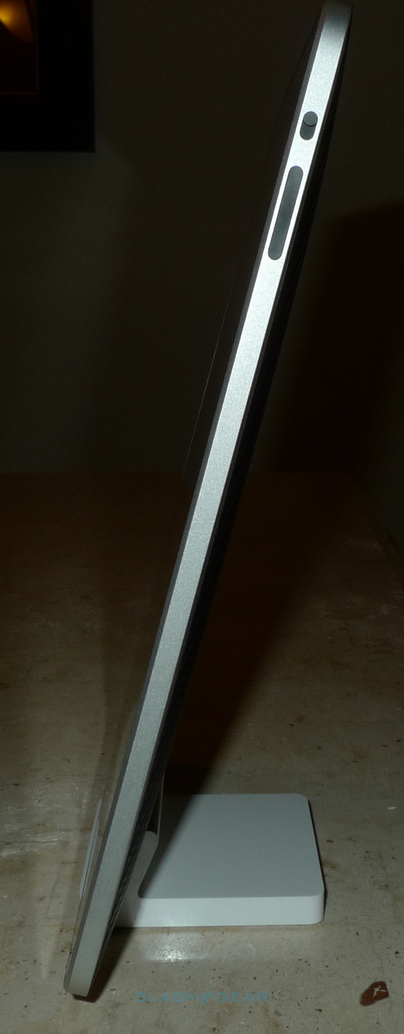 That means no USB ports, no HDMI and no memory card slot, all well worked-over by Apple's fans and critics since the iPad's specifications were first confirmed. Similarly critiqued has been the roughly 1-inch black bezel surrounding the 9.7-inch, 1,024 x 768 capacitive touchscreen, with plenty of questions as to why Apple didn't opt for an edge-to-edge display. The answer – as any slate-format tablet user has been saying, and as becomes plainly clear once you actually have the iPad in your hands – is that it gives you a place to actually grab and hold the iPad, without your fingers accidentally touching the edge of the screen.
