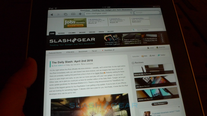 The Apple iPad is here, and if ever there was a contentious gadget, this is it. We met with Apple this past week to pick up one of a few iPads let out into the wild early, and have been playing with it ever since. Already the subject of countless discussions, arguments and parodies – not least because of what it doesn't do rather than what it's actually capable of – there's also a grudging expectation that, if anyone can make tablets wildly popular, it's probably Apple. So, does the iPad live up to its promise, or is this really just an oversized iPod touch too big (and too expensive) for your pocket? Check out the full SlashGear review after the cut.