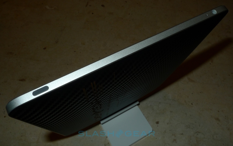The iPad itself takes the design concept of a slate and boils it down to pretty much the bare minimum. Measuring 9.56 x 7.47 x 0.50 inches and tipping the scales at 1.5 pounds, the front is basically all glass and the back all brushed aluminum. Apple has always been for paring down ports and hardware controls, but the iPad is perhaps a new extreme. Up top there's a 3.5mm headphones jack, a discrete microphone hold and the power/lock button, while the volume rocker and a switch to freeze automatic screen rotation are on the right edge. The small speaker and standard 30-pin proprietary Dock Connector are underneath, while an ambient light sensor lurks almost invisible under the glass fascia.