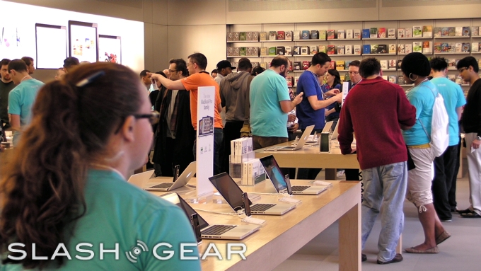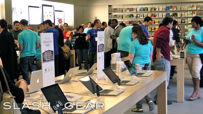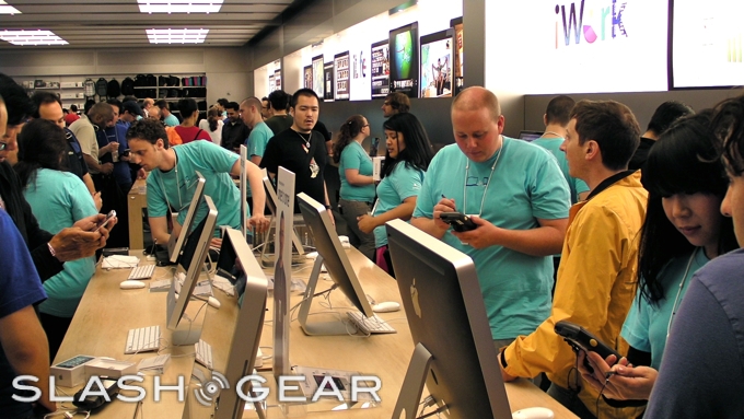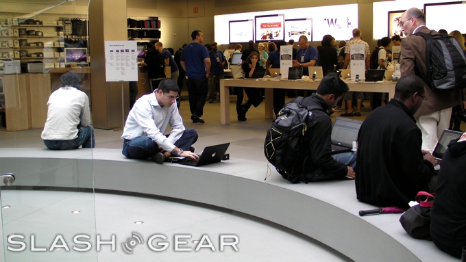 Unlike the sidewalk-spanning lines in 2007 and 2008, this time Apple only needed to cordon off their immediate area. We're putting all this down to a glut of online orders with people expecting a visit from their friendly UPS person sometime today; allowing iTunes activations at home might not lead to camera-friendly swathes of people outside your store, but it does make life a whole lot smoother for those working inside it!