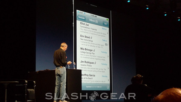 The other new features include Retina Integration with all of the applications — developers don't have to do anything to make it work. The enhanced camera, obviously, as well as plenty more. Stay tuned with the liveblog, because it doesn't look like Jobs is ready to quit any time soon.