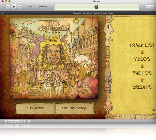iTunes LP is the next evolution of the music album delivering a rich, immersive experience for select albums on the iTunes Store by combining beautiful design with expanded visual features like live performance videos, lyrics, artwork, liner notes, interviews, photos, album credits and more. iTunes LP debuts today with albums including Bob Dylan's "Highway 61 Revisited," Norah Jones' "Come Away With Me," The Grateful Dead's "American Beauty" and Dave Matthews Band's "Big Whiskey and the GrooGrux King: iTunes Pass." The new iTunes Extras provides a similar experience for movies on iTunes with features including documentaries, deleted scenes, interviews and interactive galleries. iTunes Extras is now available for select movies including "Twilight," "Batman Begins," "WALL-E," "Iron Man" and "The Da Vinci Code." Customers can enjoy iTunes LP and iTunes Extras on a Mac or PC.