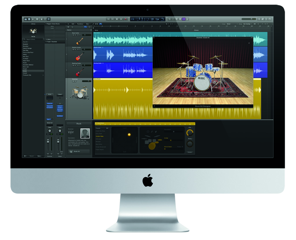 Flex Pitch works like the infamous autotune, adjusting out-of-tune vocals but also capable of finessing individual musical notes within a waveform. Paired with Drummer, even the most amateur of bands should be able to coax out something halfway musical, with Apple turning to professional session players and recording engineers for the core algorithms that power the backing system. A Drum Kit Designer allows a virtual kit to be pieced together, and then played by Drummer.