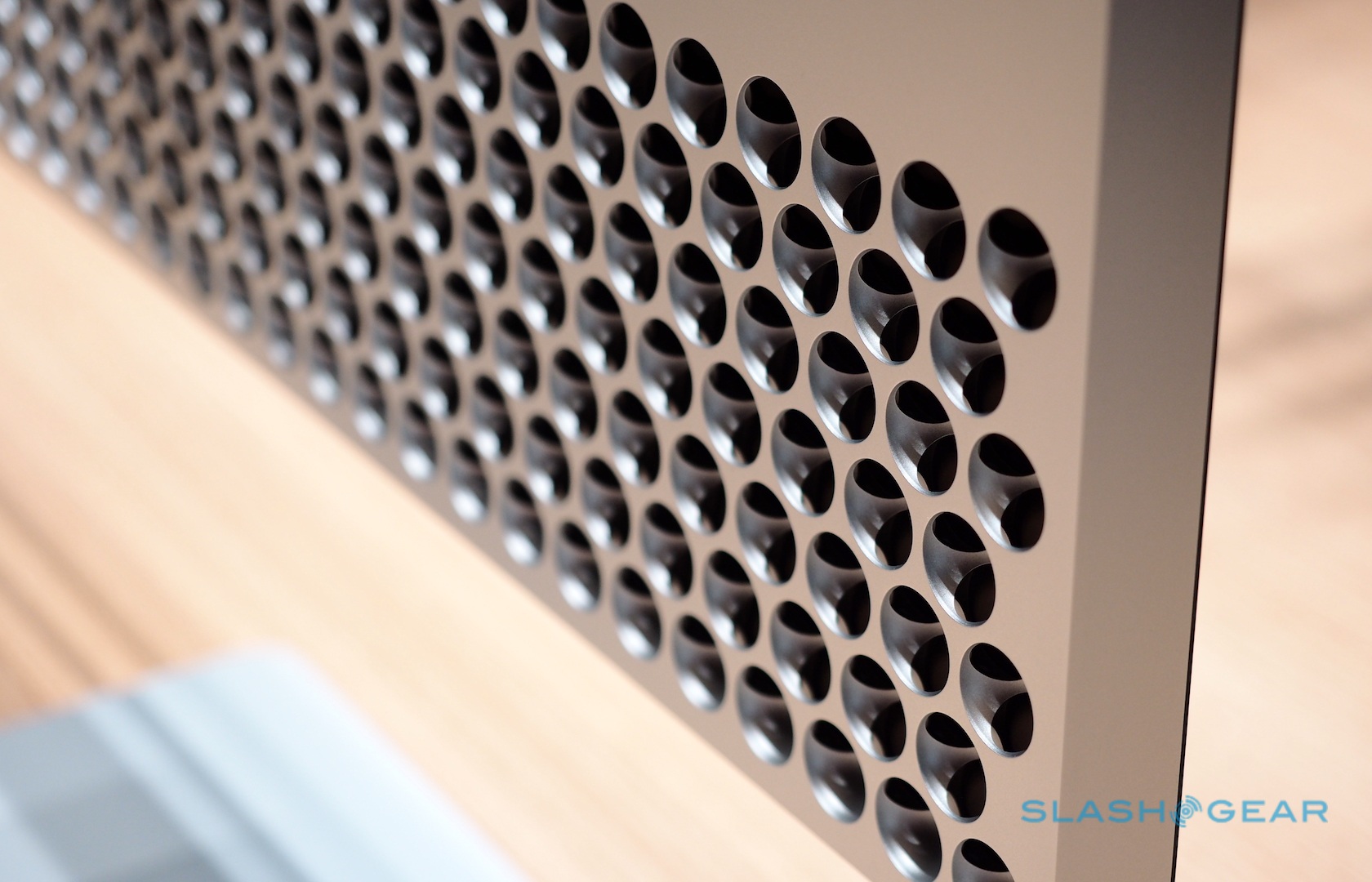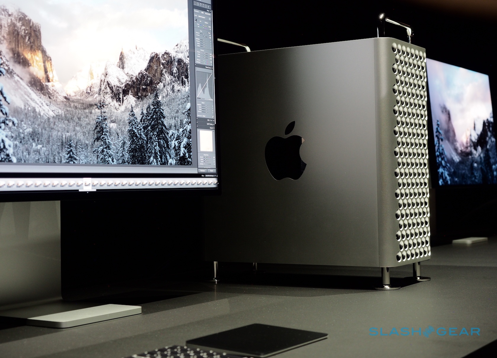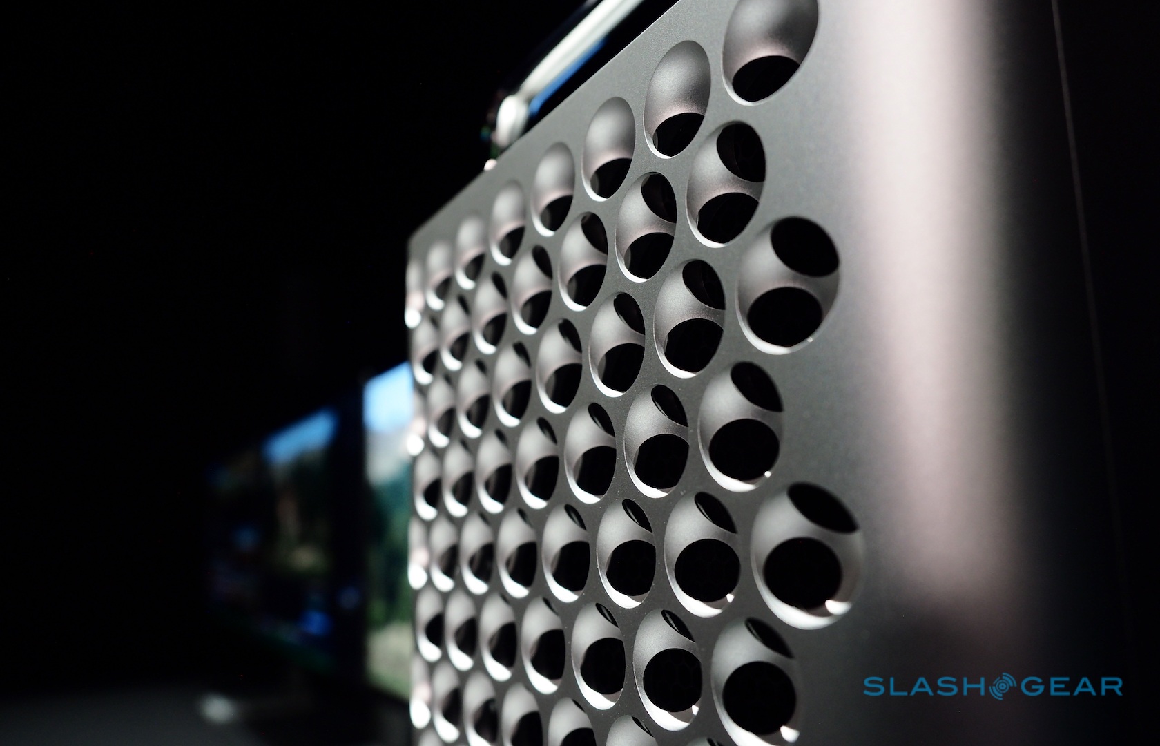 There's room for up to eight cards inside, four of which are dual-width. Apple has its own modular design, and a video accelerator card option too. You can have up to a 28-core Xeon CPU.
