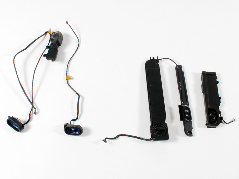 On a more positive note, the notebooks should run relatively quietly even under high-load, as Apple have used a unique fan with more than the usual number of blades. That allows them to lower the spin-rate, while still moving the same amount of air. Also, servicing in general should be easier, as the internal design is apparently slicker than in previous models. The MacBook speakers have been upgraded to a more substantial set, and its display – despite being glass and metal – weighs less than the older, plastic MacBook (in the image below, the new speakers are on the right and the old speakers on the left).