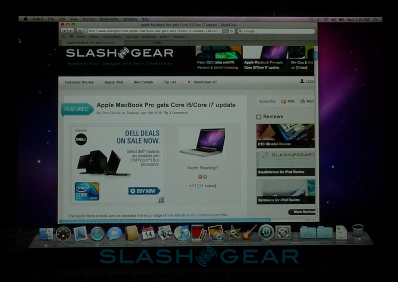 Officially launched yesterday, Apple's Core i7 15-inch MacBook Pro has arrived on the SlashGear testbench and is crying out for an unboxing. Sticking to the same unibody aluminum style of its predecessors, the new MacBook Pro throws out the old Core 2 Duo CPUs and replaces them with a choice of Core i5 and Core i7 chips paired with NVIDIA GeForce 320M graphics.